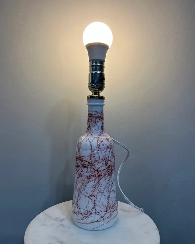 Hazel-Atlas bottled converted into a table lamp. In excellent condition with no chips or cracks. Lamp works great. Measures 10” tall to the top of the bottle and 4” wide. Message me with any questions.