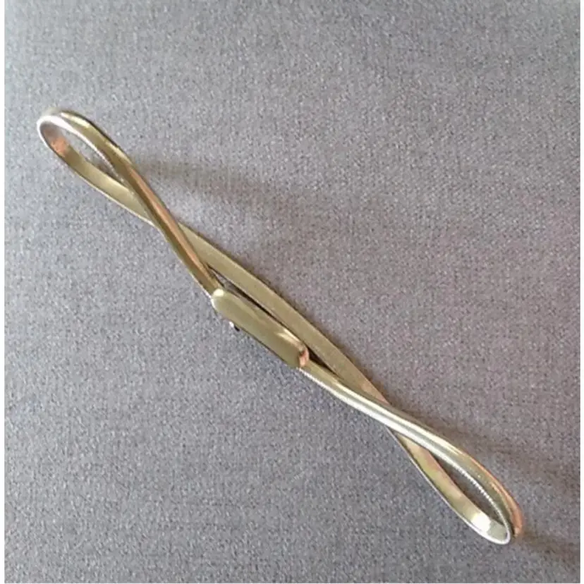 silvertone metallic stretch belt, vintage late 40s. this style regained popularity in the '80s. it is styled to be worn very high on the waist . measures 23" unstretched. Best for small or extra small.