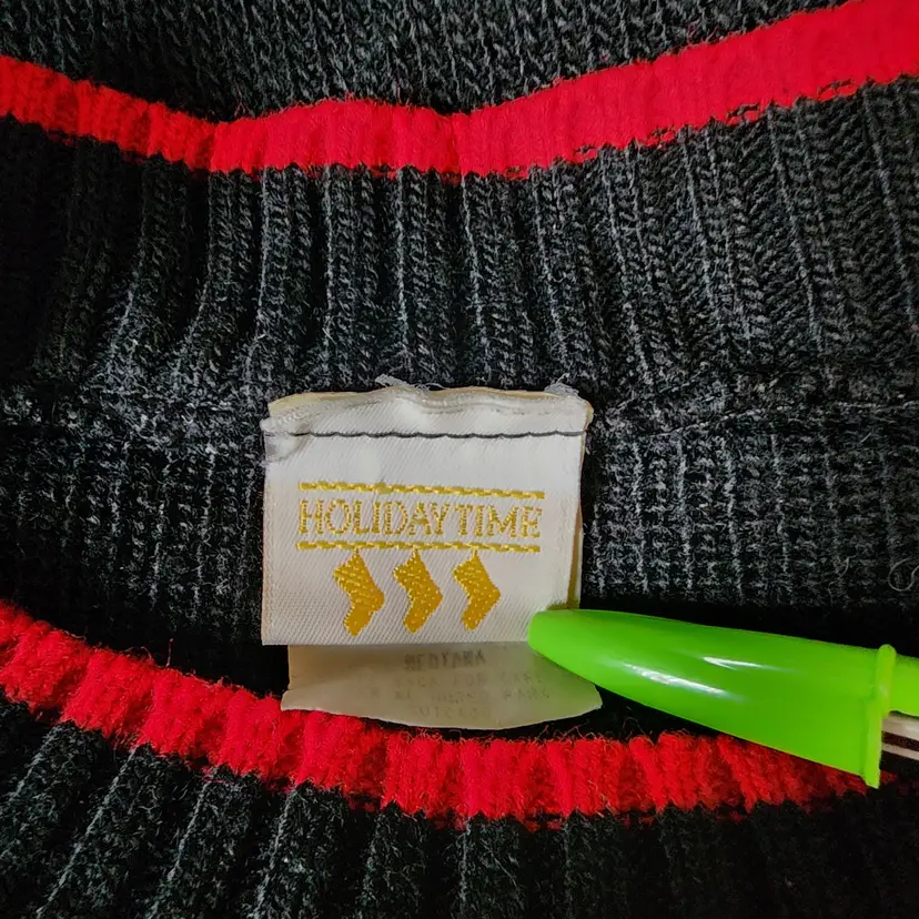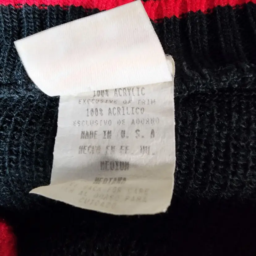This vintage sweater is in good condition with no noted stains or damage. The red and gold areas have metallic looking threads in them. Made in the USA.