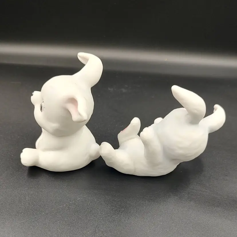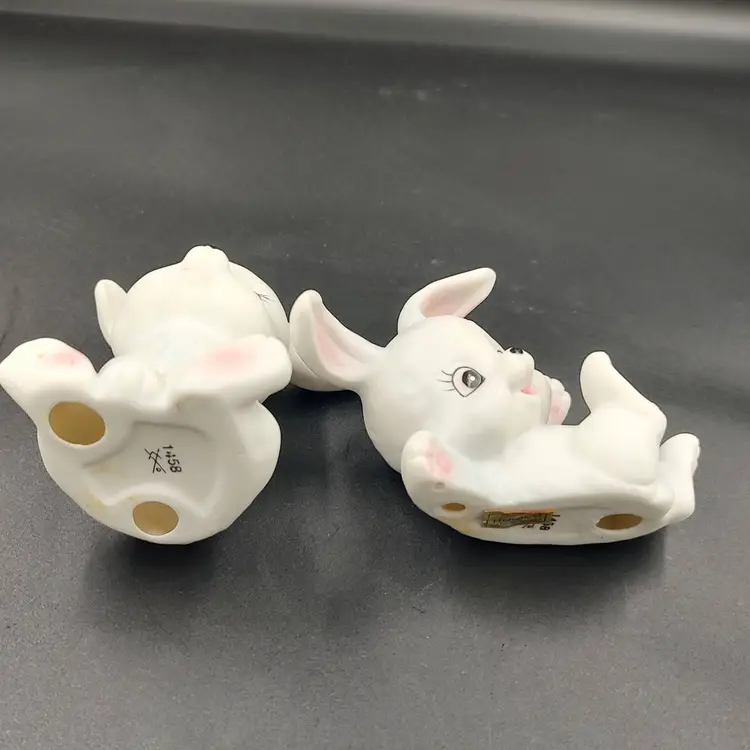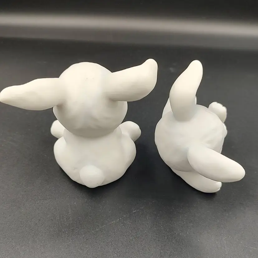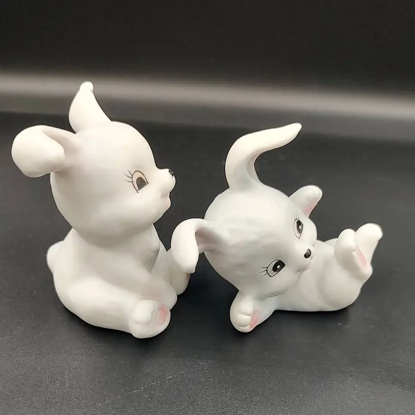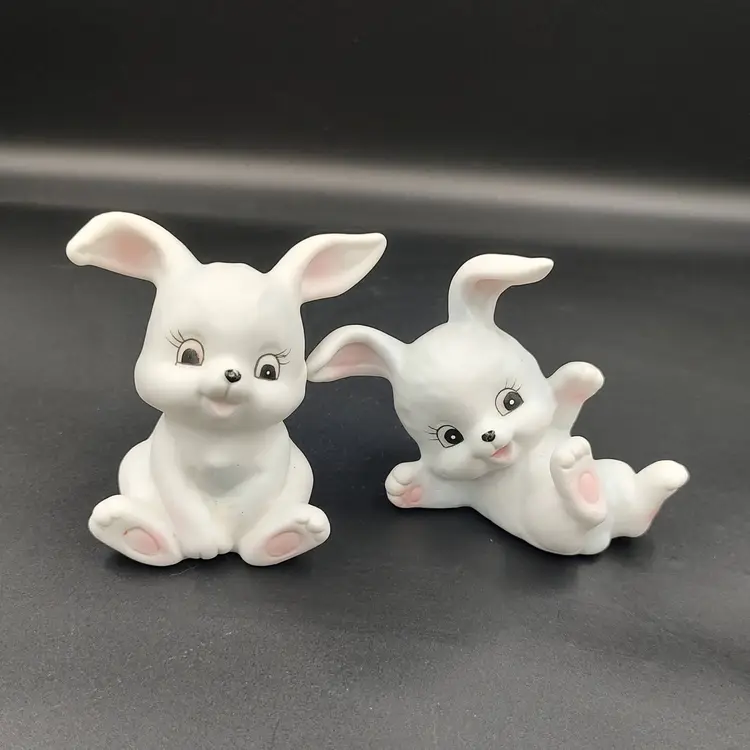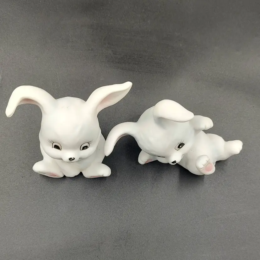 Vintage Homco "Playful Bunnies" White Ceramic Figurines. Height 3" x width 2.5"-3" x length 2"-2.5". Made in Taiwan.