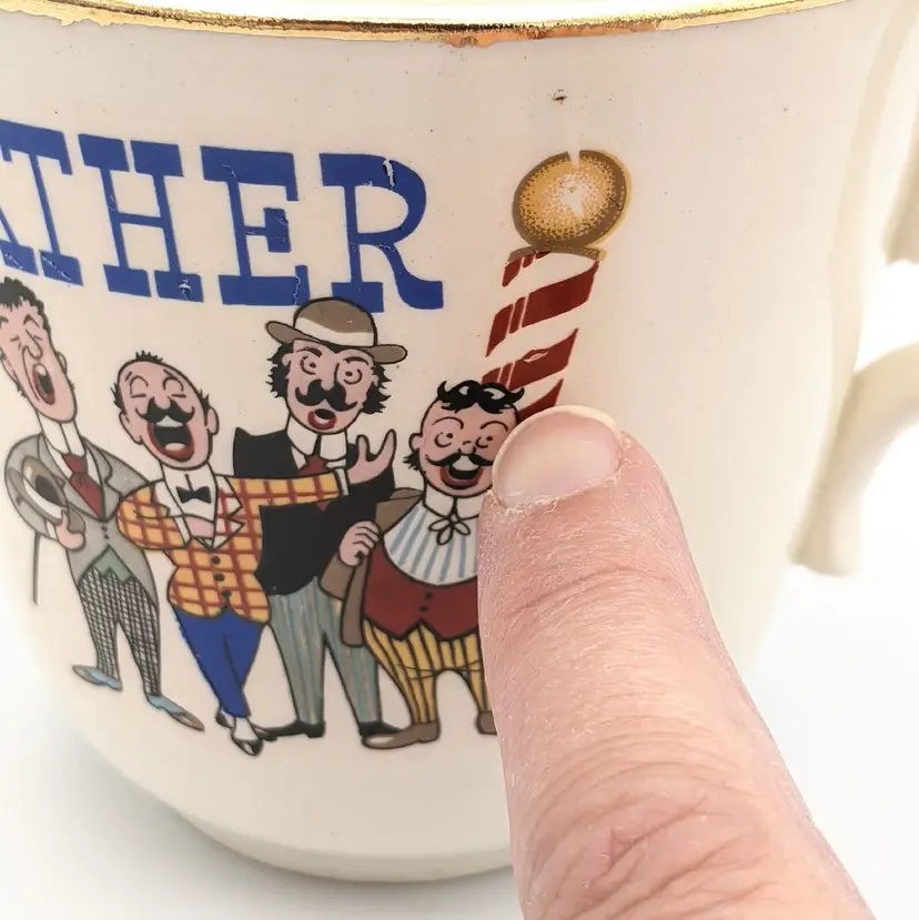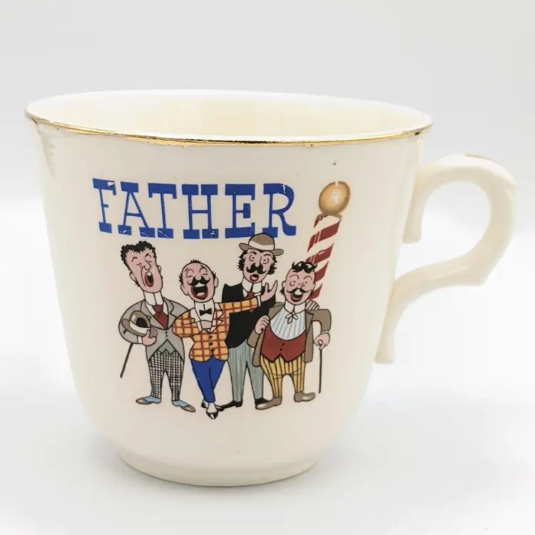 Some scratches on the Father Design, Wear on the Gold Trim, No chips, cracks or crazing Brand: Homer Laughlin Item Height: 4 in Time Period Manufactured: 1950-1959 Country/Region of Manufacture: United States Item Width: 4 in
