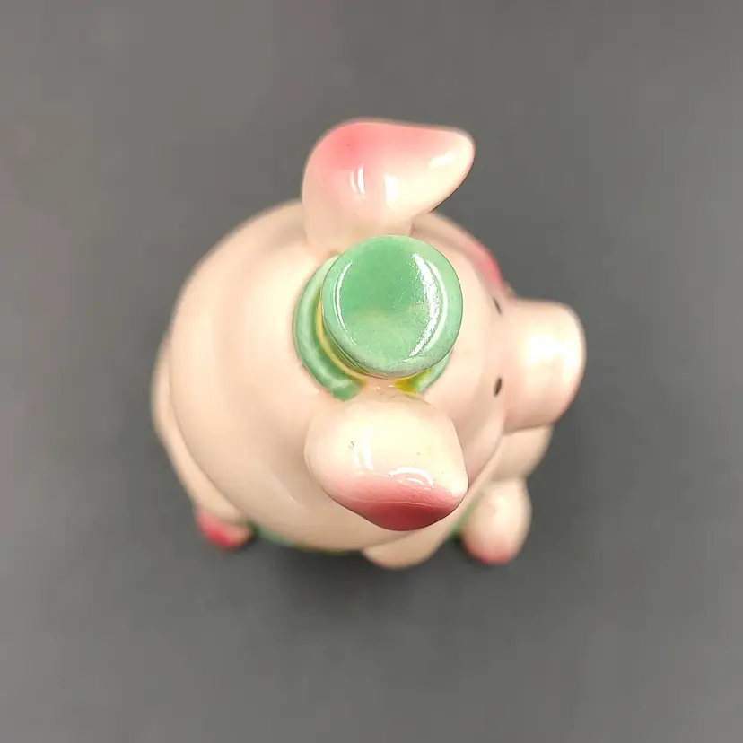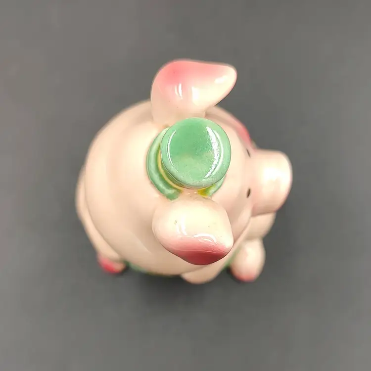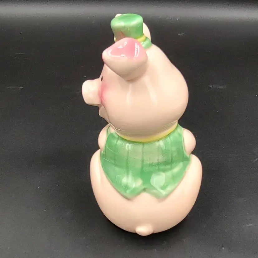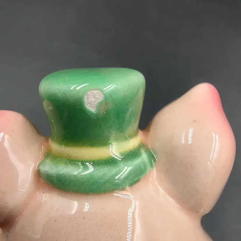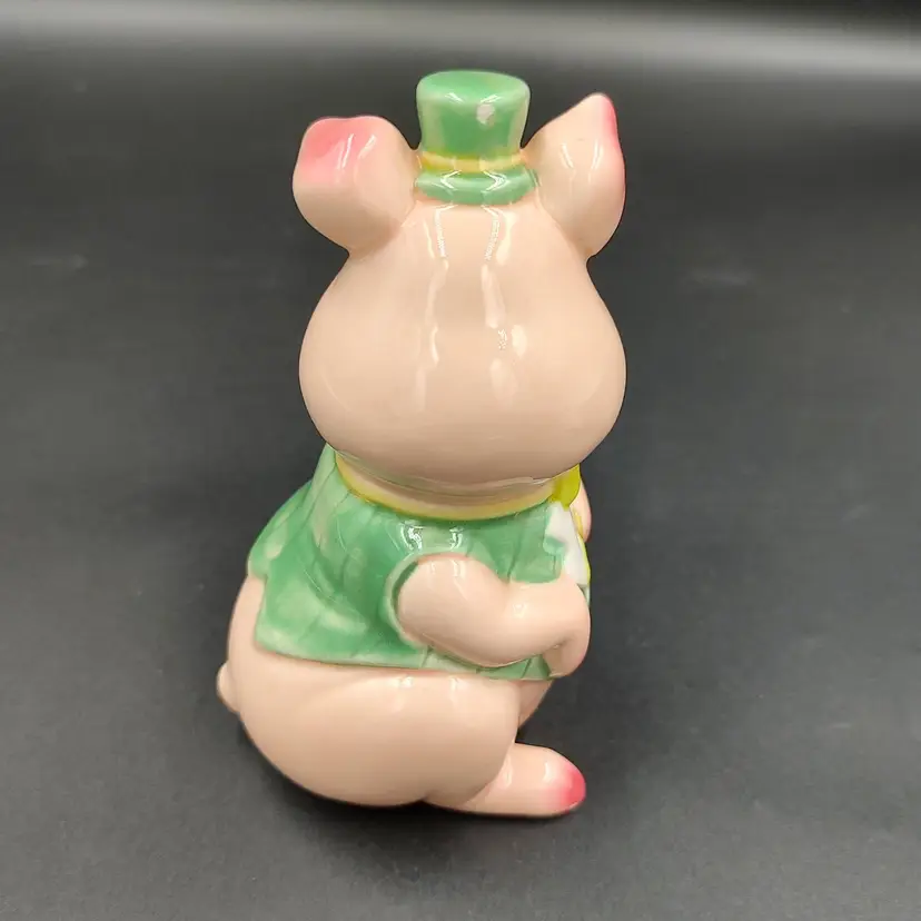 Vintage House Of Ireland Piggy With top Hat and Shamrock Figurine. Height 4" x width 2" x length 2.5". Has a small chip on back of hat. Made in Korea
