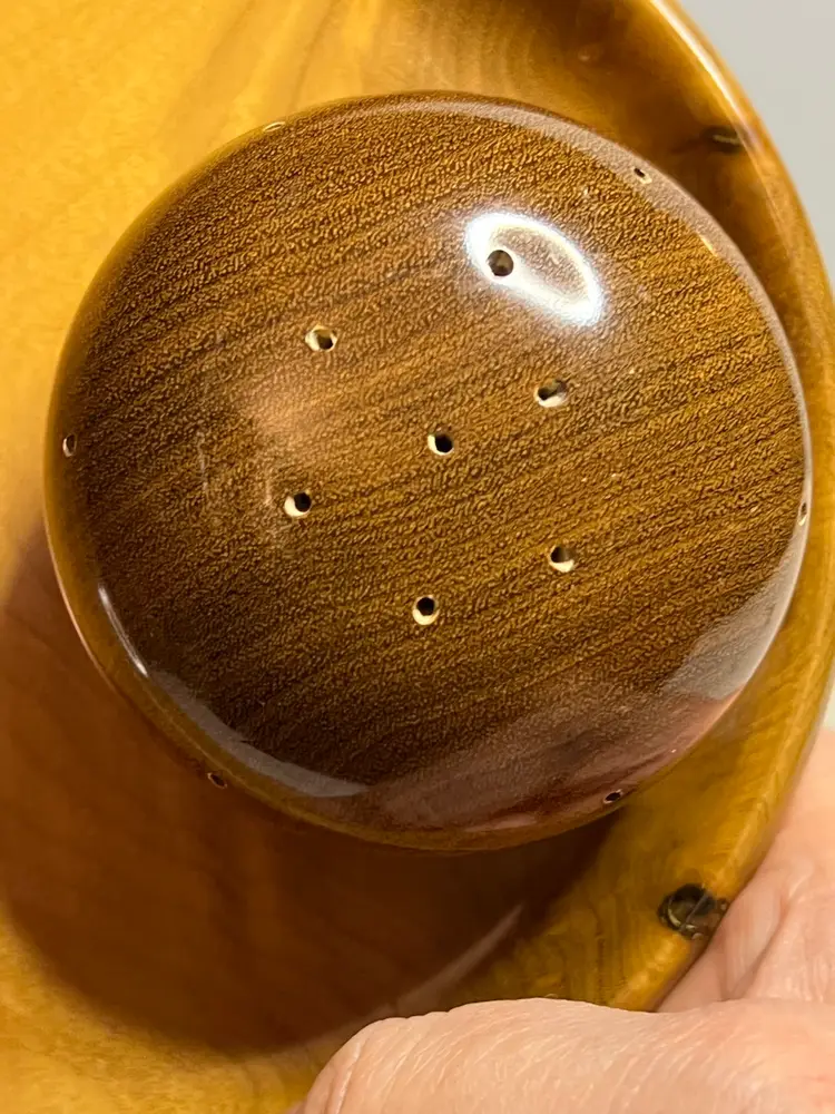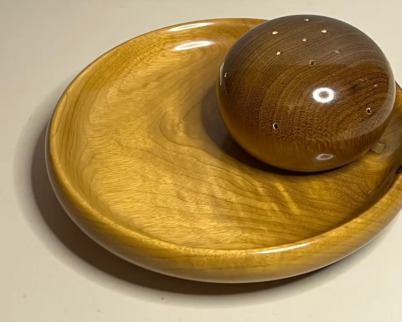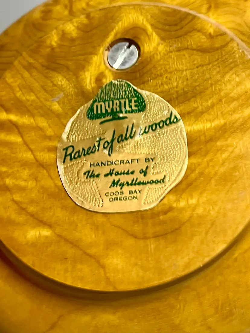 House of Myrtlewood hor D’ouvre server with ball that holds toothpicks for cheese, olives, etc. 6” by 2 3/4”