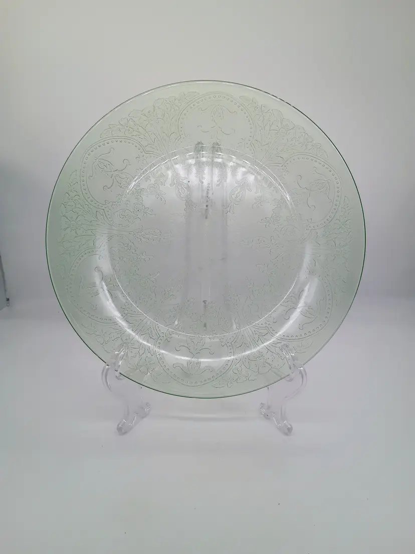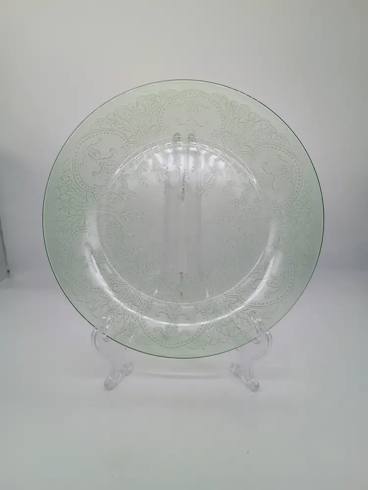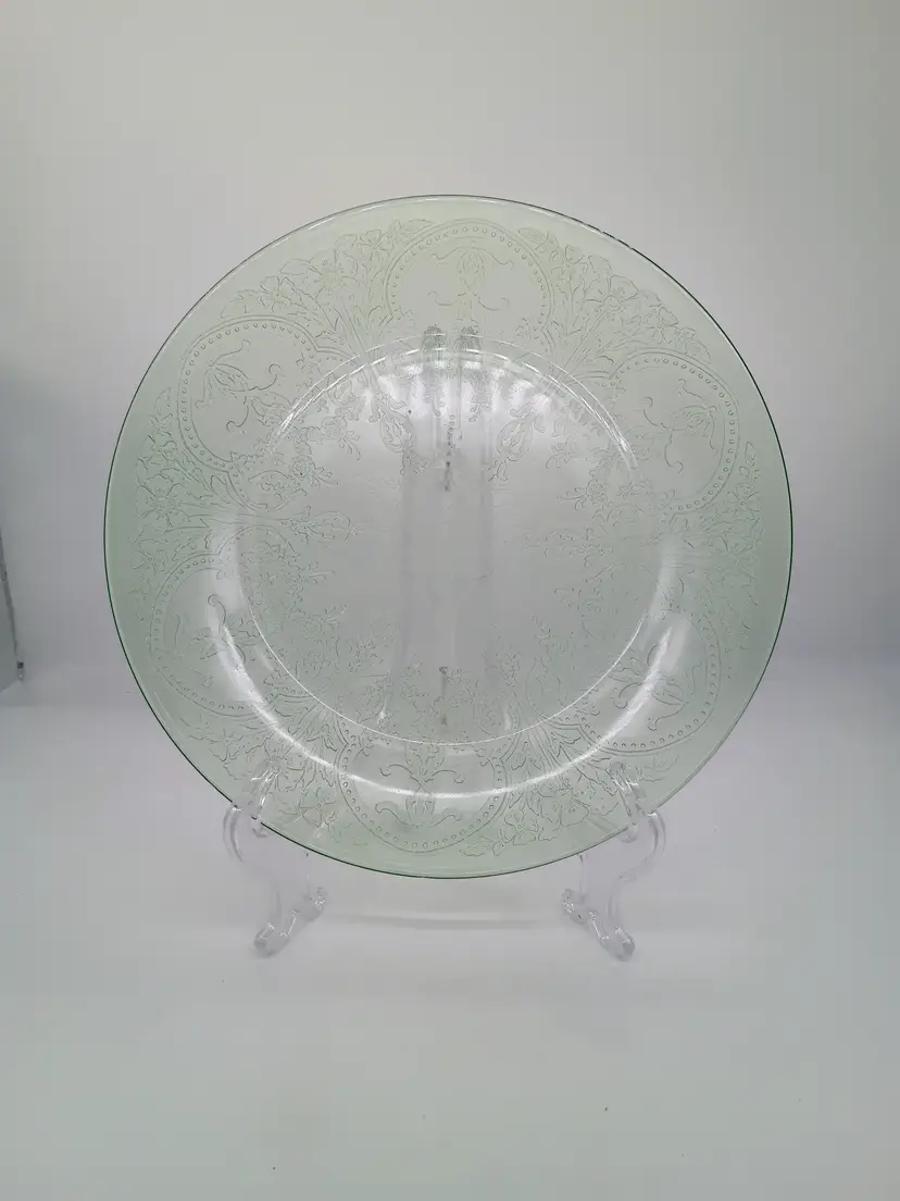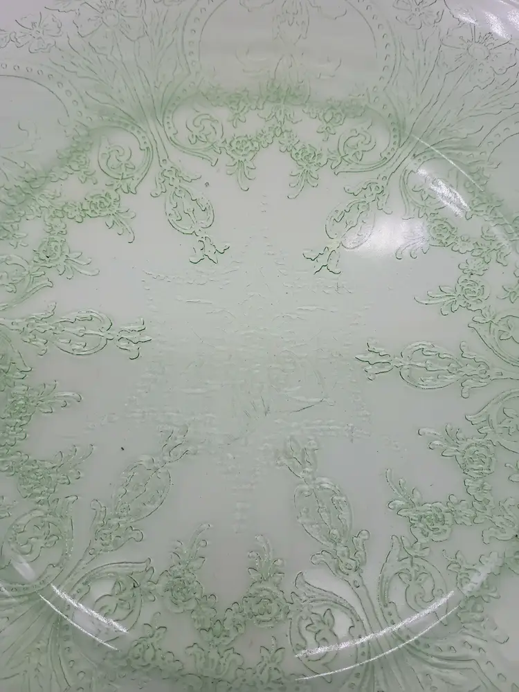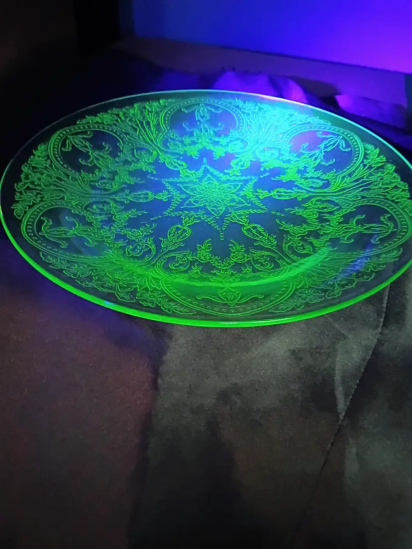 VTG Indiana Glass Green Uranium Depression Glass Horseshoe Platter Chop Plate 11 1/2" GLOWS. This is called a Chop or Sandwich Platter. This is a preowned item. Circa 1930-1939. No chips cracks or flea bites. Bright glow under UV light. no surface scratches. Excellent condition. Ships USPS