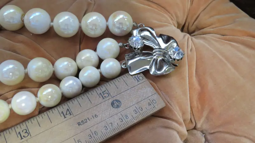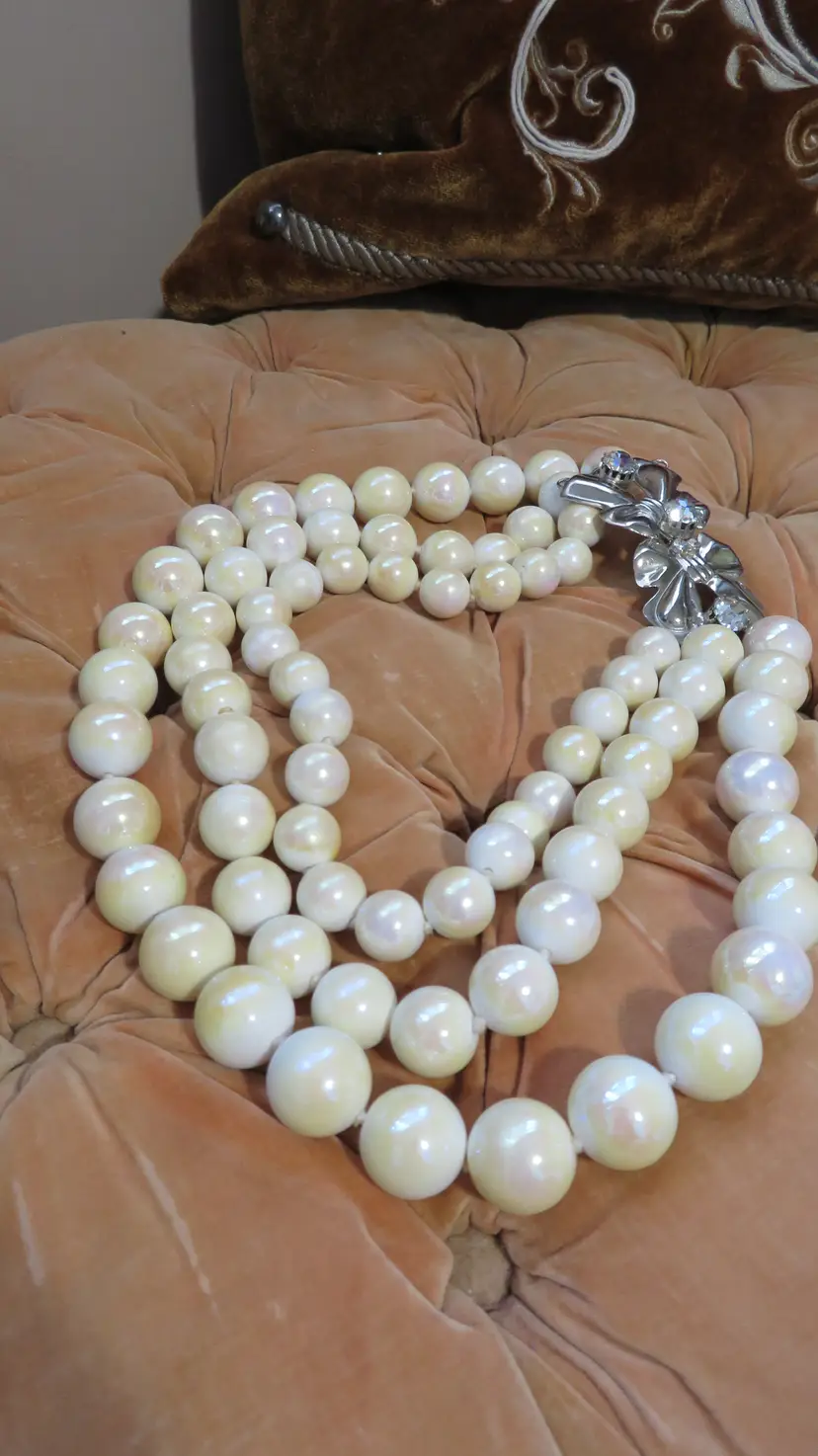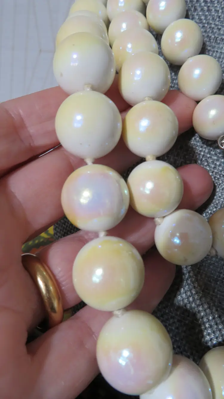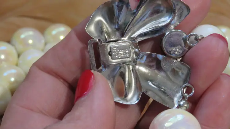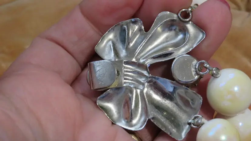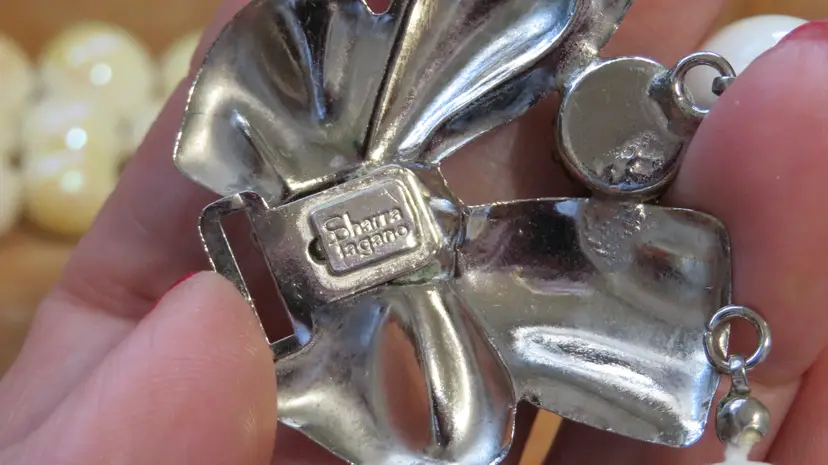 Immerse yourself in the timeless elegance of the 1960s with the Vtg Italian artist Sharra Pagano necklace, exclusively available at Josmoon Vintage Shop. This exquisite piece features three strands of lustrous faux pearls, beautifully complemented by intricately designed silver accents. Signed by the renowned artist Sharra Pagano, each necklace embodies the artistry and sophistication of vintage Italian craftsmanship. Perfect for collectors and fashion enthusiasts alike, this necklace is a statement of retro glamour and curated luxury. Elevate your style with a touch of classic allure from our curated selection of vintage jewelry. The necklace and the pouch both smell like laundry detergent.