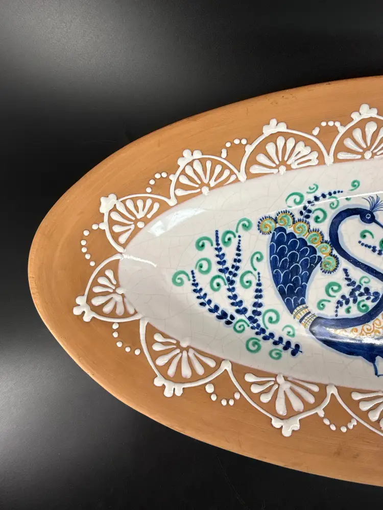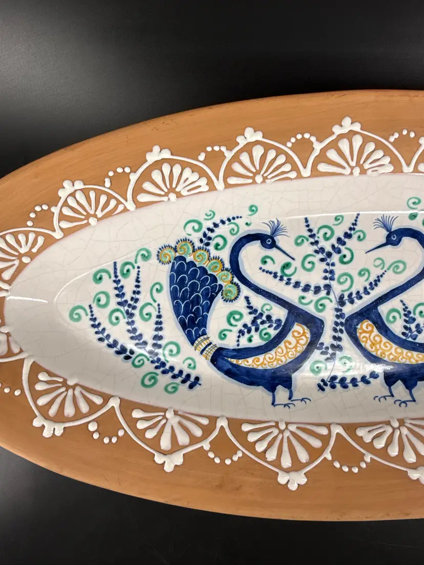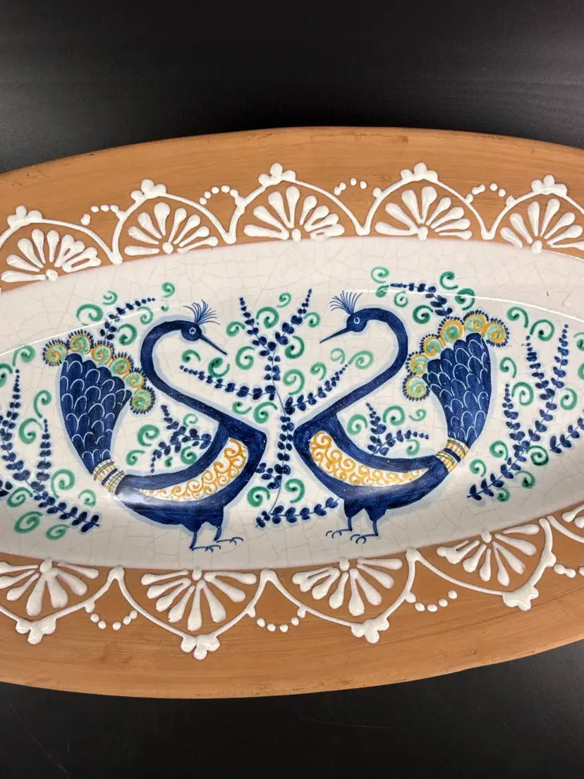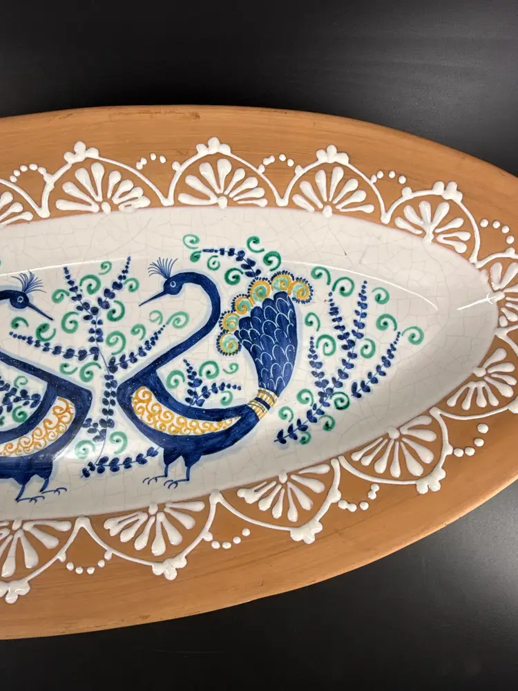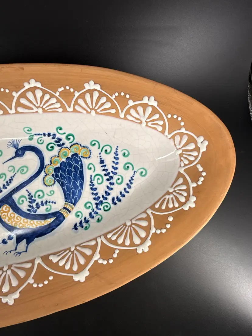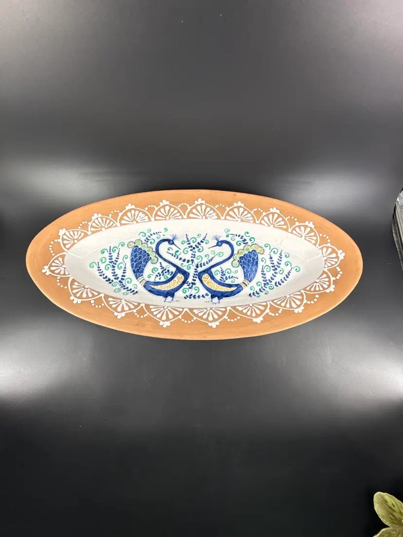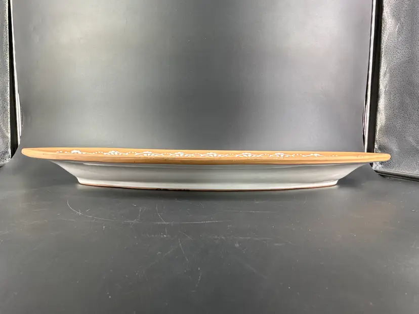 It is 2" tall and measures 23"x10.75". It is in excellent condition. There are no cracks, breaks, chips or repairs. (See photos).