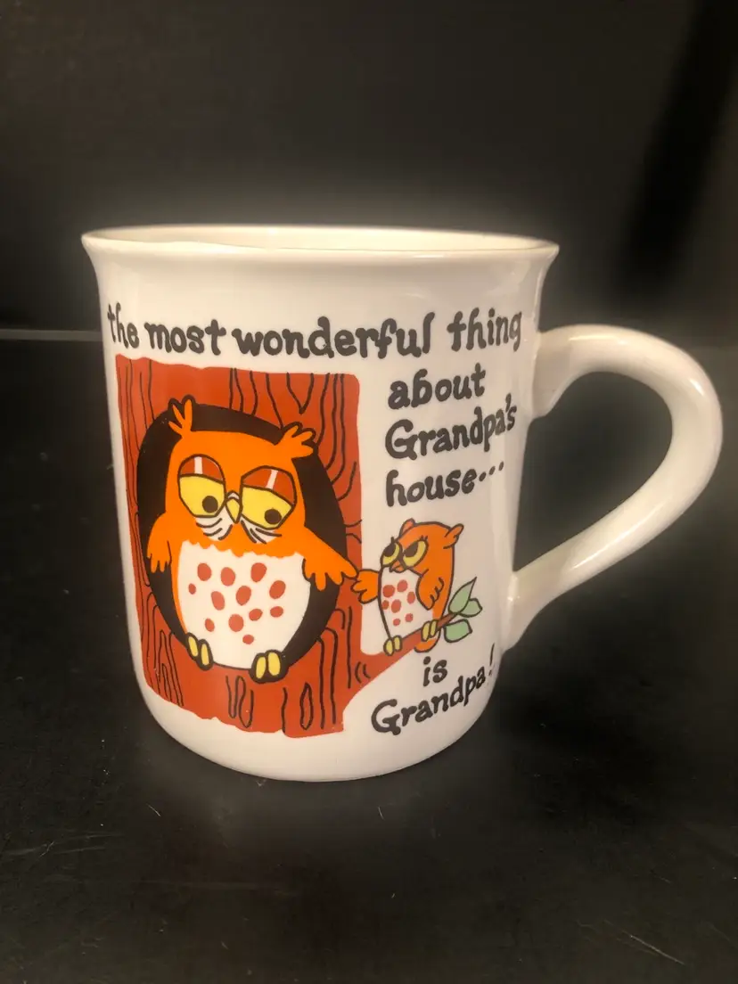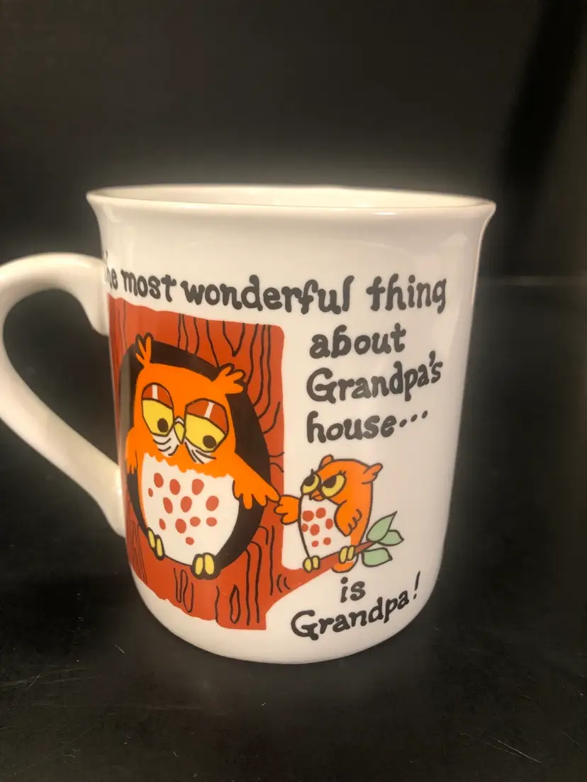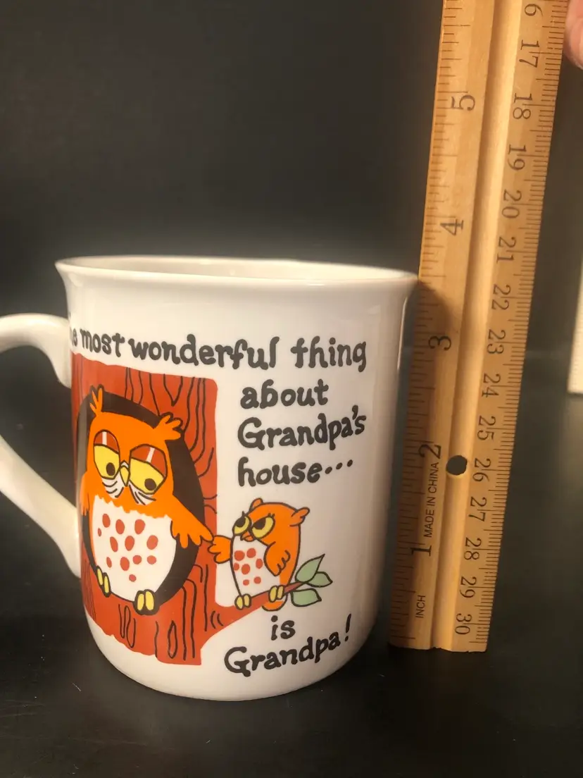 The most wonderful thing about Grandpa’s house is Grandpa! This is 3 1/2” tall and 3 1/4” across. There are no chips or cracks. The design is on both sides.