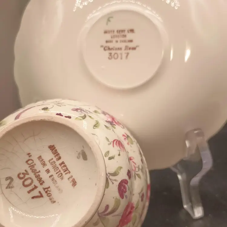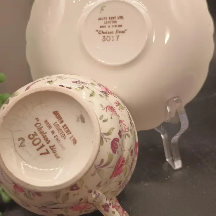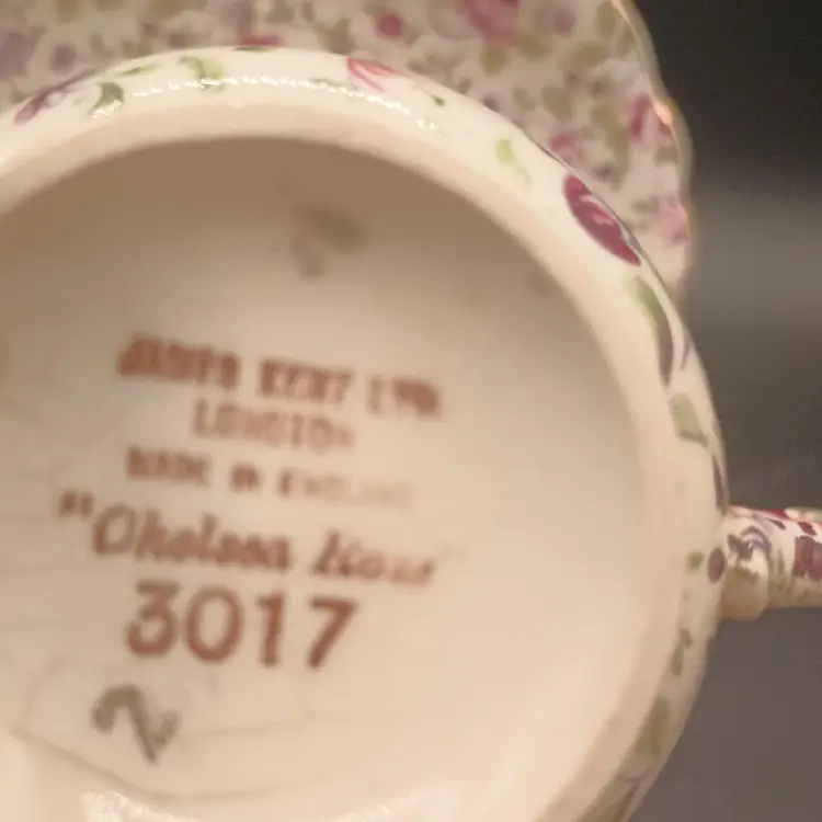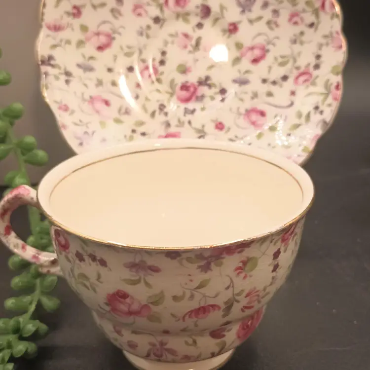 This vintage teacup and saucer set from James Kent Ltd is a stunning addition to any collection. The delicate pink rose pattern on the bone china material adds a touch of elegance to any tea time. Made in the England, this set includes one teacup and one saucer, perfect for enjoying a cup of tea in style. The set is a great find for collectors of dinnerware and serveware, and would also make a lovely gift for a tea lover