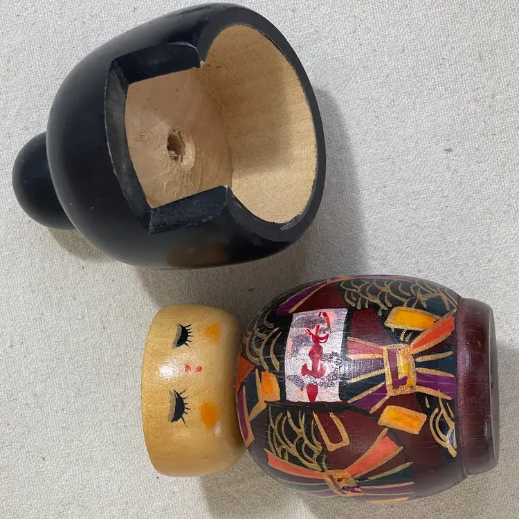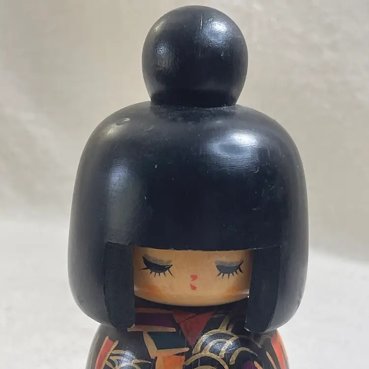 This vintage Japanese Kokeshi Doll Girl Figurine is a true work of art. Handmade with exquisite attention to detail, this figurine features a charming girl in a traditional Japanese kimono. The intricate design of the kimono and the doll's expressive face make it a valuable addition to any collection. This doll is perfect for collectors of Asian culture and history.