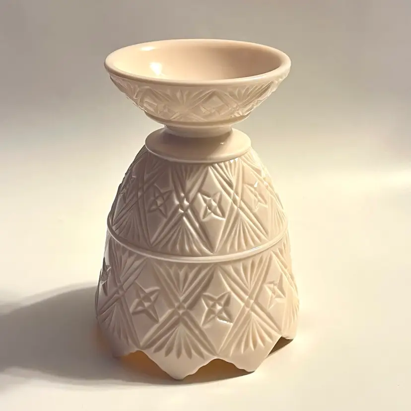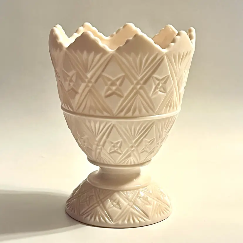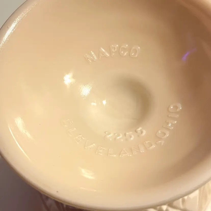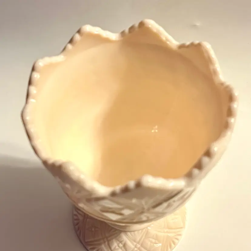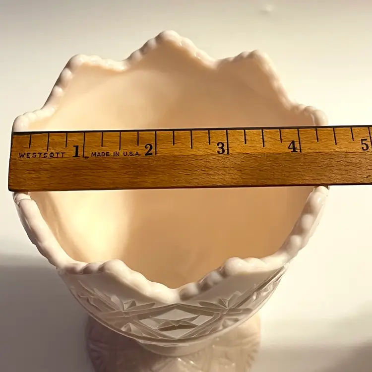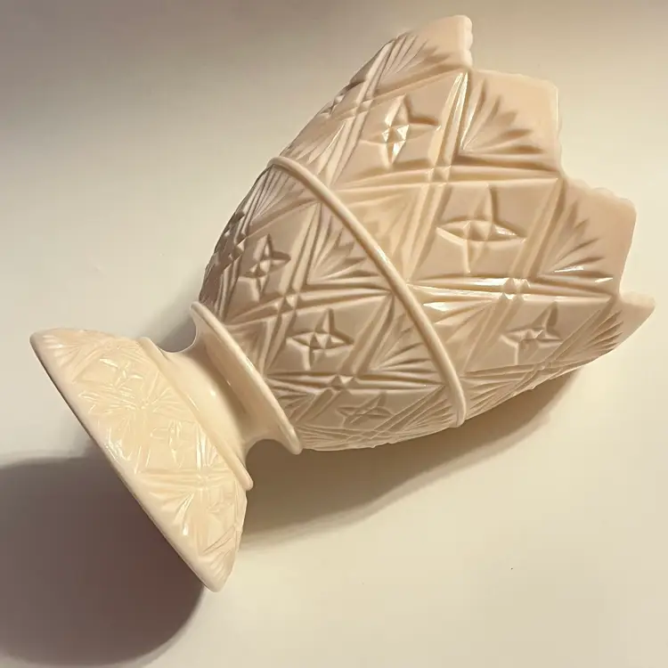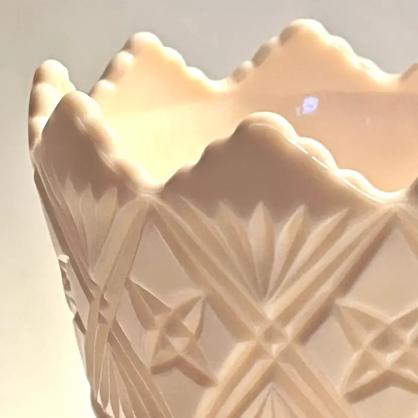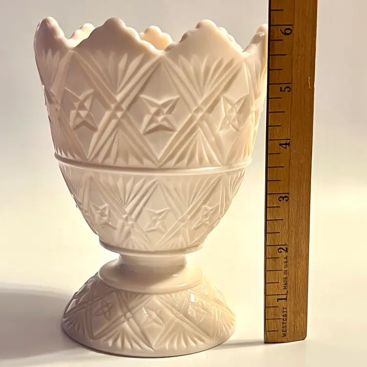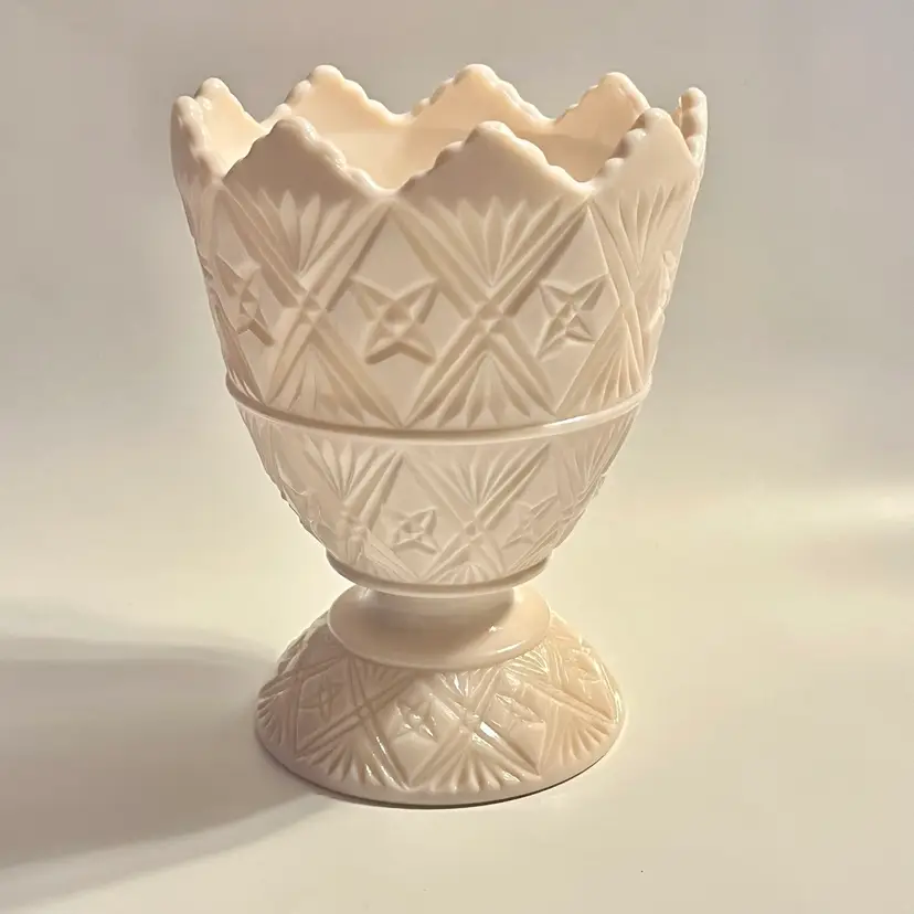 Charming vintage Jeannette pink milk glass footed planter vase, paired with the NAPCO 2255 form, in a soft pastel pink tone perfect for spring and Easter displays. The footed silhouette adds lift and presence, making it lovely for small floral arrangements, faux greenery, or as a stand-alone accent in a cottage, shabby chic, or pastel‑themed vignette.