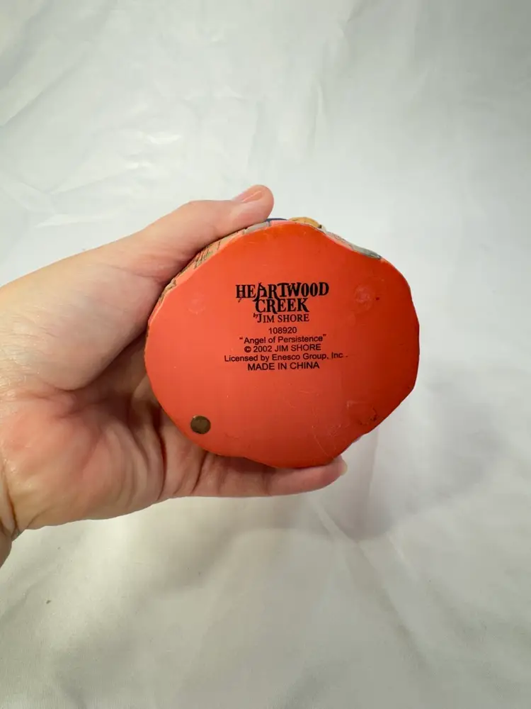 Vintage 2002 Jim Shore Heartwood Creek “Angel of Persistence” resin figurine. This angel is in very good condition. I did notice while taking pictures that her wreath on her head has a few tiny chips. These is easily remedied with a dab of paint. Other than that, which I have included pictures, she is in excellent condition. Please see pictures for measurements.
