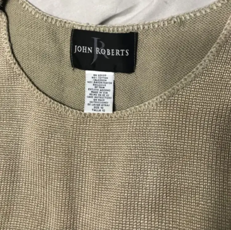 80's VTG JOHN ROBERTS Women's soft light olive tone” size 10 Color: Light Olive, Olive Green (Light)/ Soft Olive o Pale Olive Material: 60% Cotton / 40% rayo Exclusive of trim Made in USA Size 10