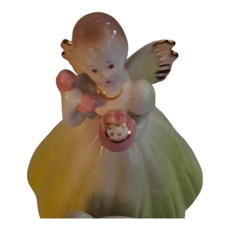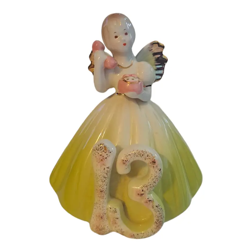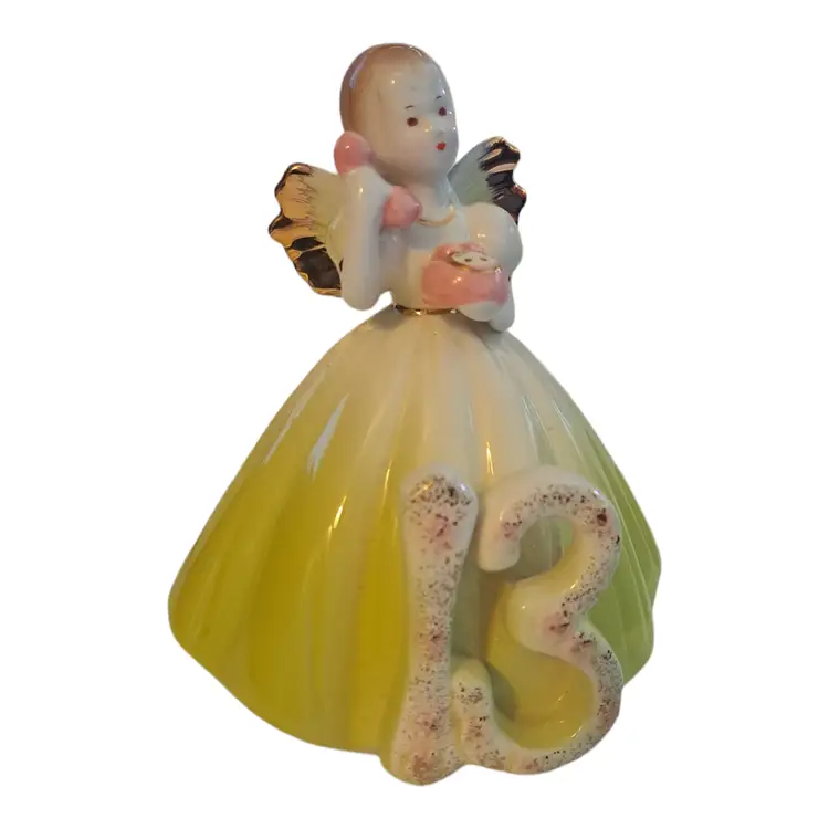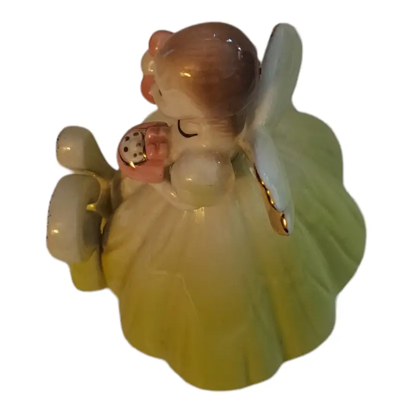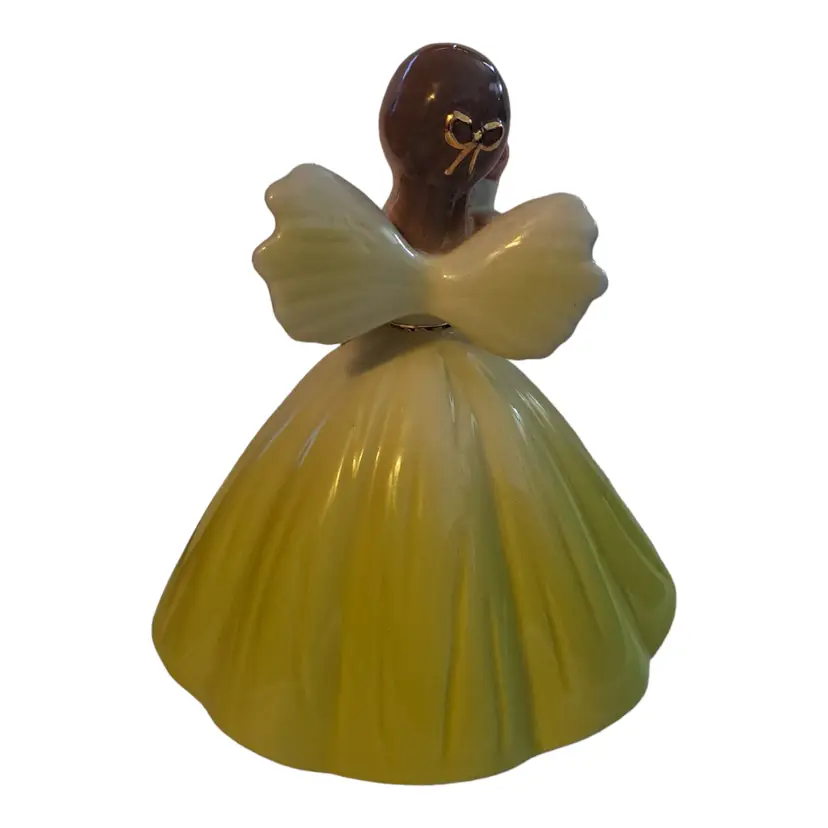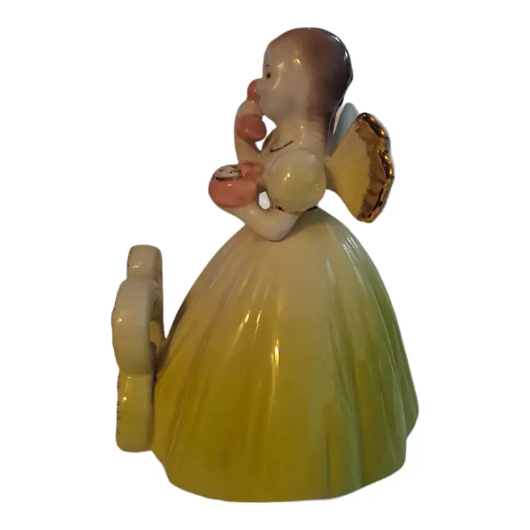 Lovely Girl in a Spring Yellow Green Dress chatting in the phone. 5.5" tall no chips or cracks 13th Birthday