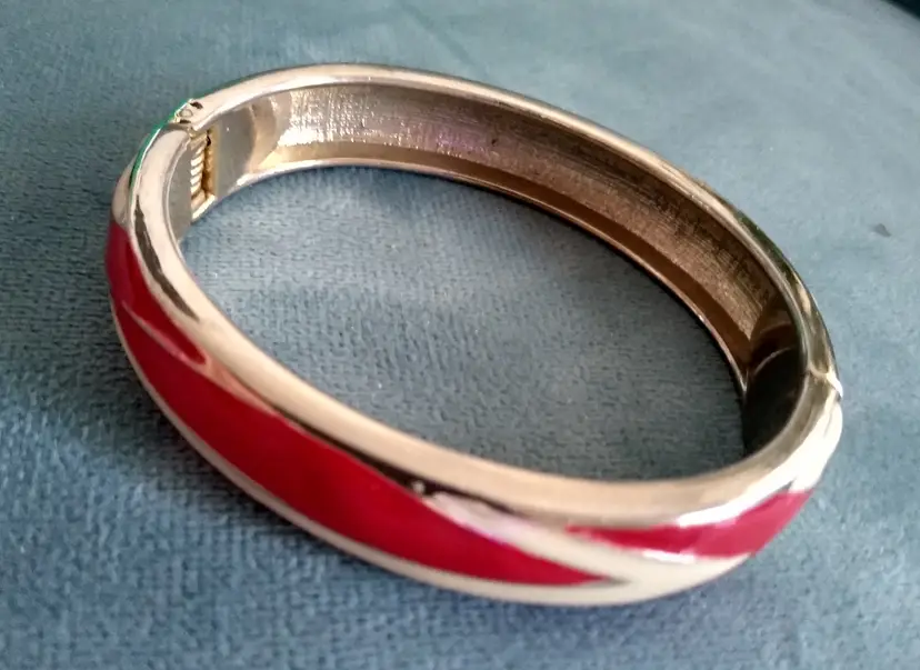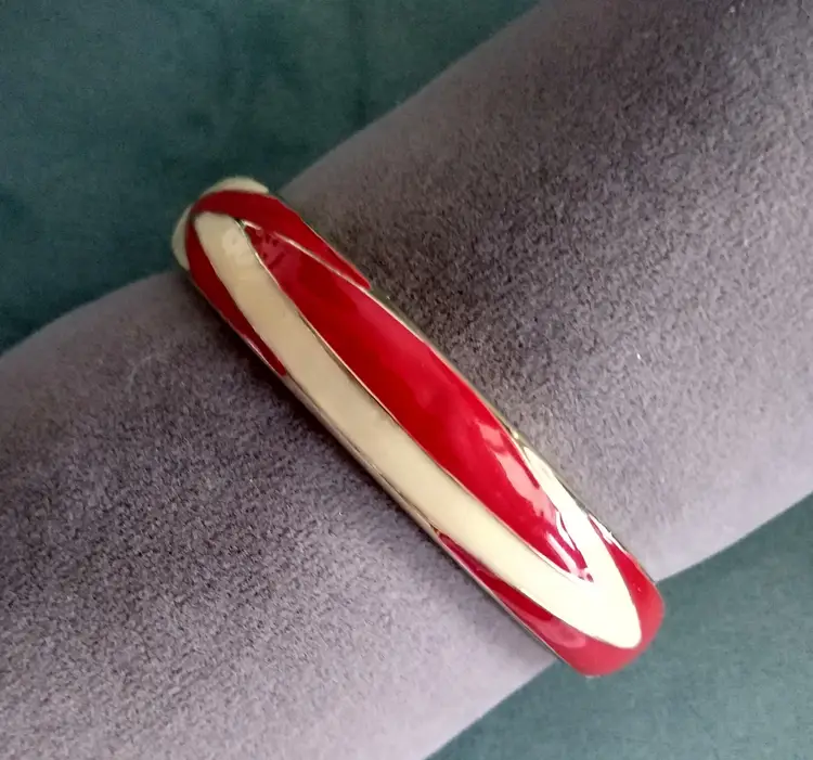 Stunning cream and red enamel over gold tone. In beautiful condition!