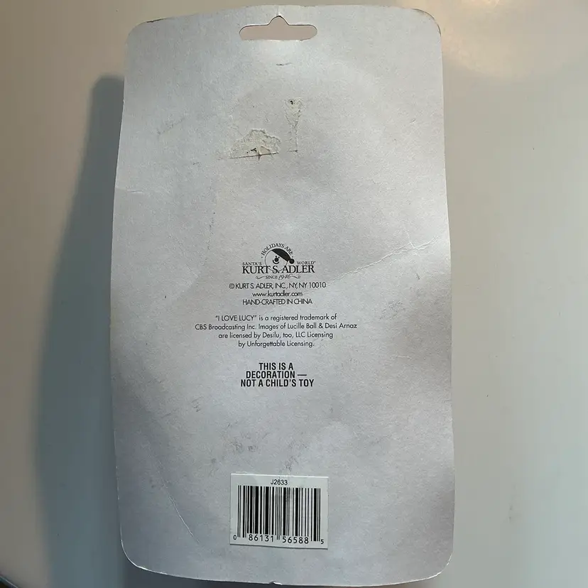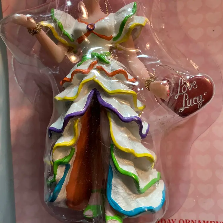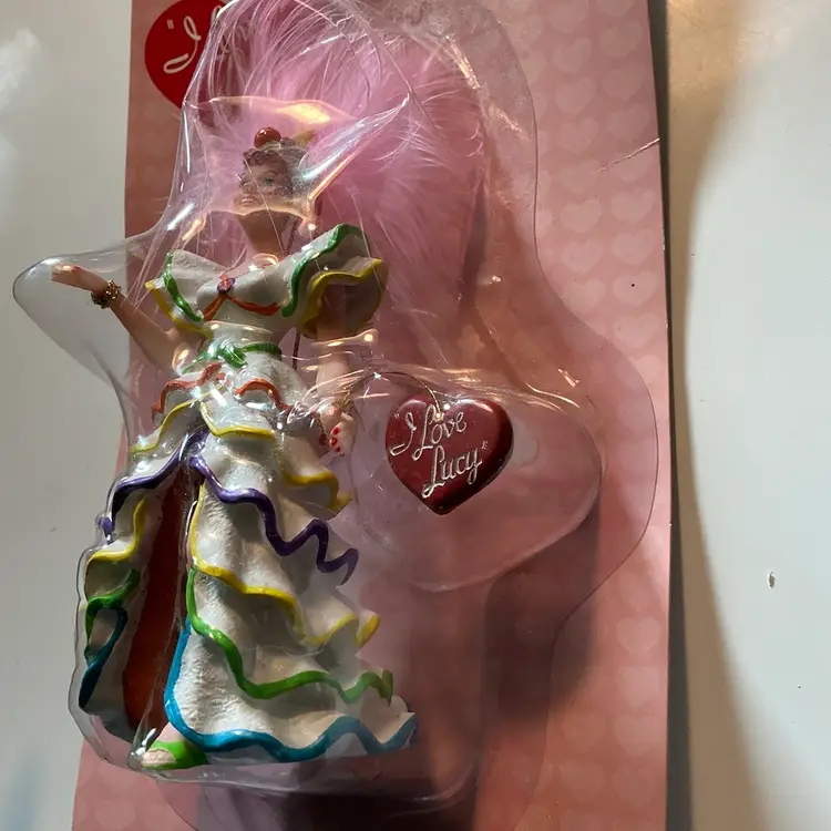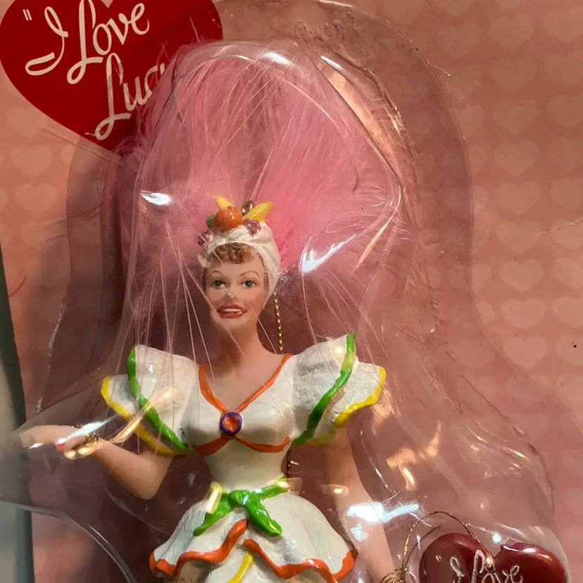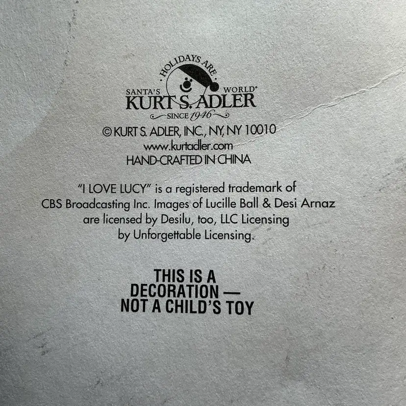 The product is a vintage Kurt Adler Christmas ornament featuring the iconic "I Love Lucy" theme. This ornament is part of a collection of holiday decorations perfect for fans of the classic TV show. The high-quality design and attention to detail make it a nostalgic and charming addition to any Christmas decor. Comes from a non smoking home.