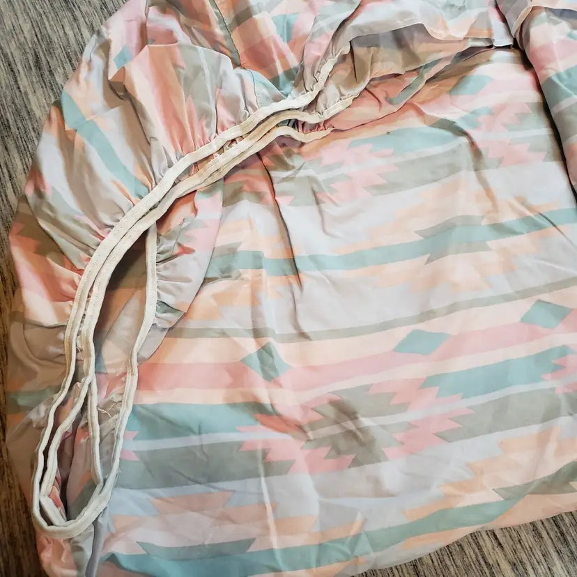 Brand: Lady Pepperell Pattern: Mesa Type: Sheet Set Department: Adults Care Instructions: Easy Care Size: Queen Color: Multicolor Theme: Aztec Style: Aztec Material: 50-50, Cotton Blend, Polycotton Country/Region of Manufacture: United States Room: Bedroom