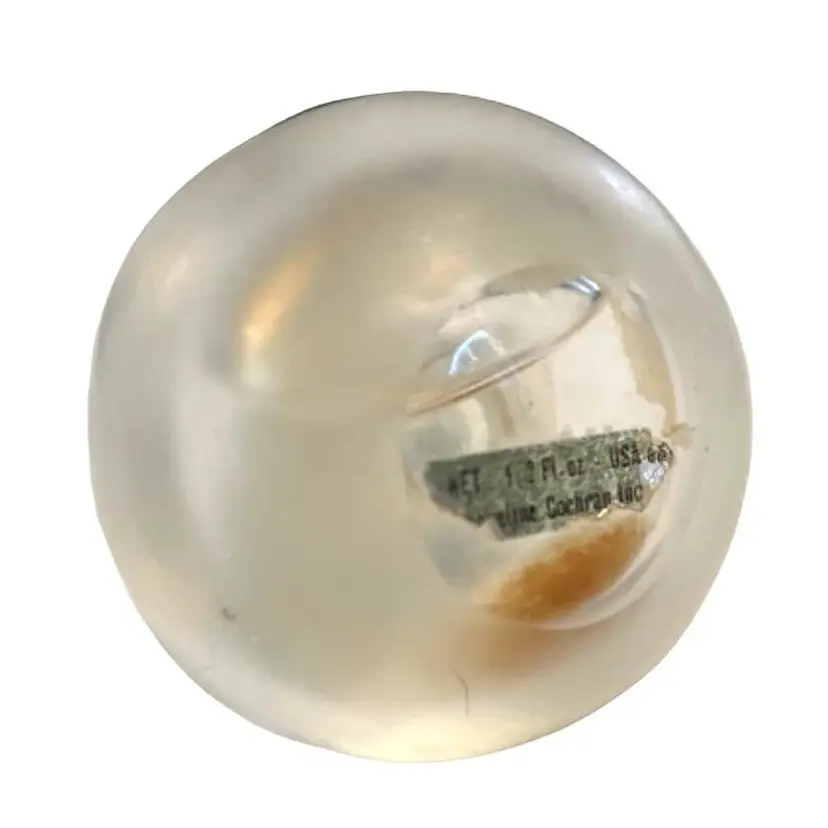 The bottle (with stopper in place) measures 2 1/2" high and is 2" wide.