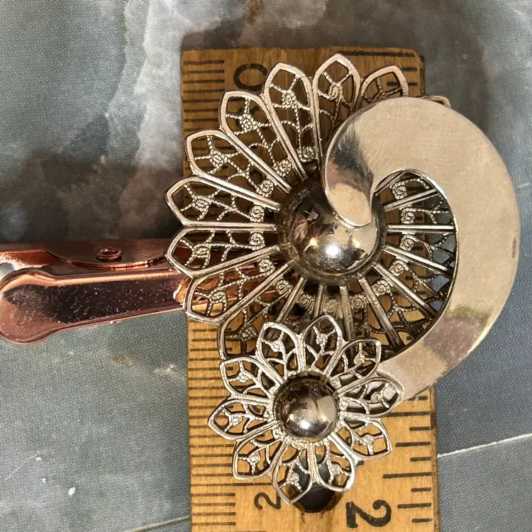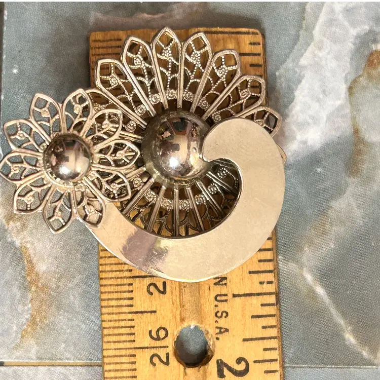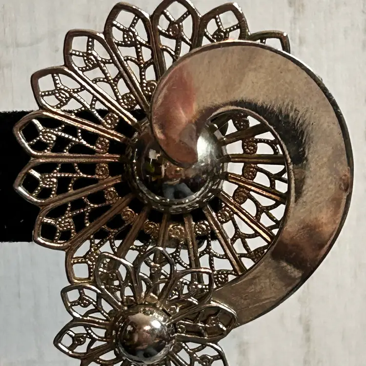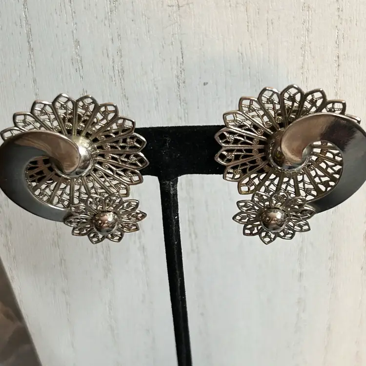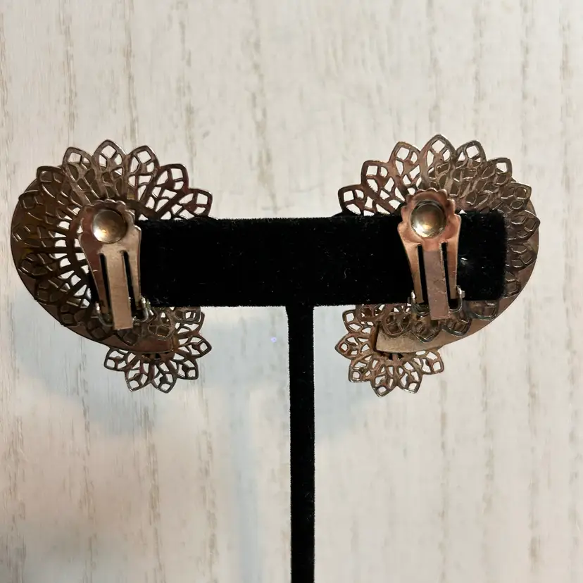 Vintage filigreed layered silver-tone clip-on earrings. In excellent vintage condition. Please see photos as they are part of the description. Thank you for looking!