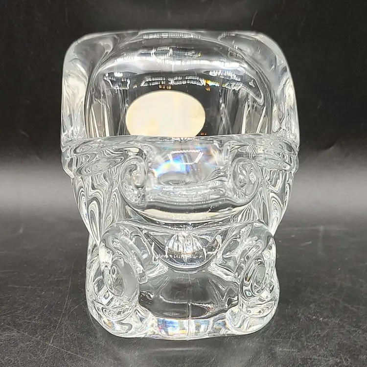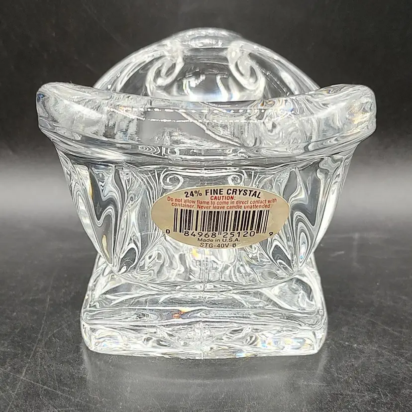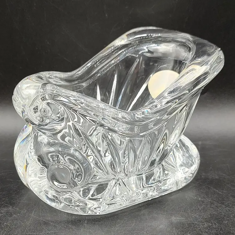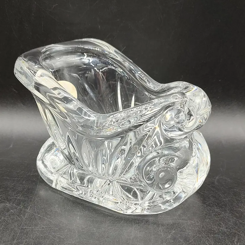 Vintage Lead Crystal Clear Santa Sleigh Candle Holder /Candy Dish height 3.5" x width 3.5" x length 5". Made in the USA