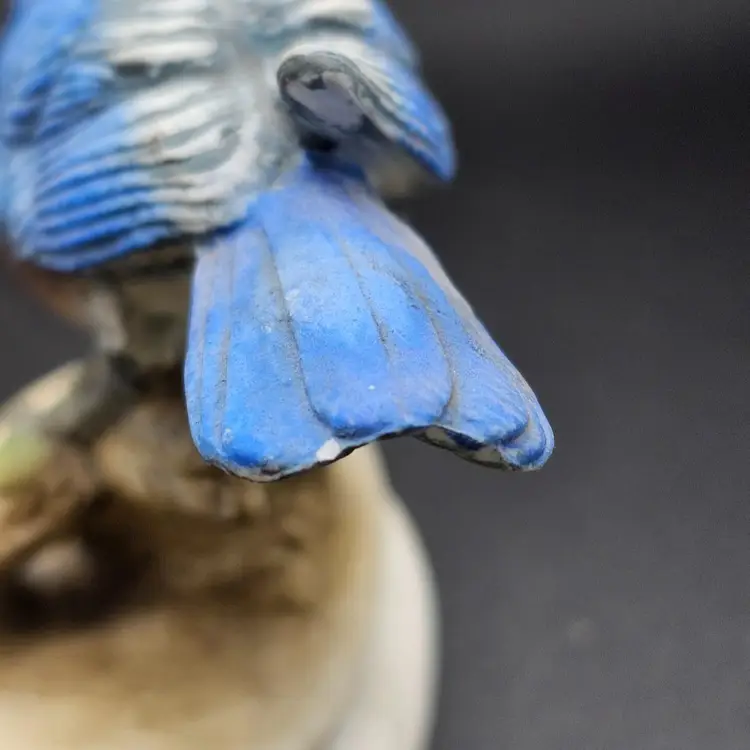 This vintage bird is beautiful. There is paint with in top, and a paint chip on its tail. See photographs