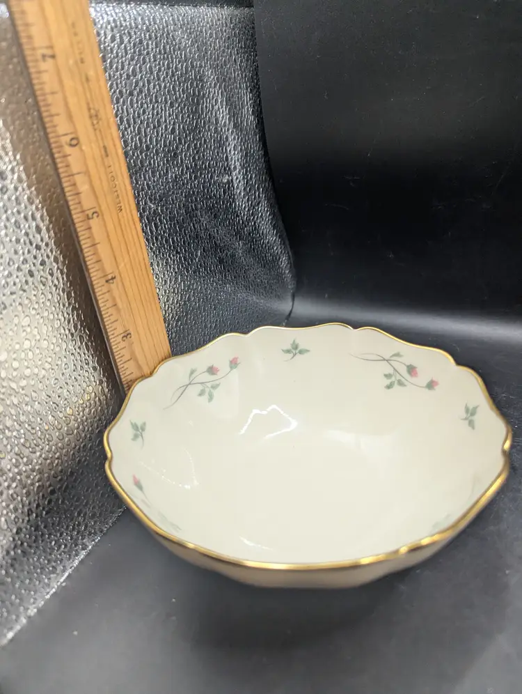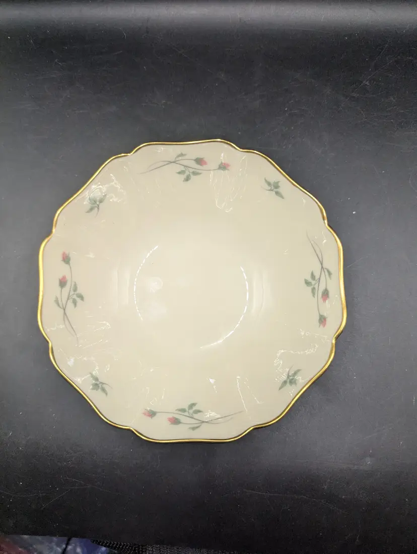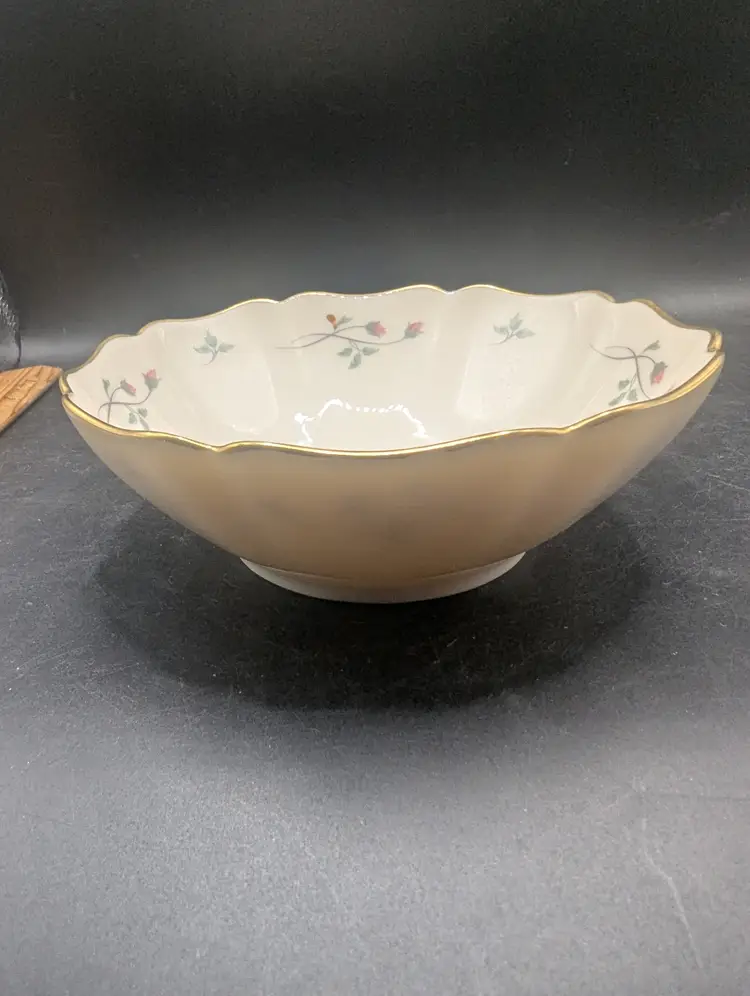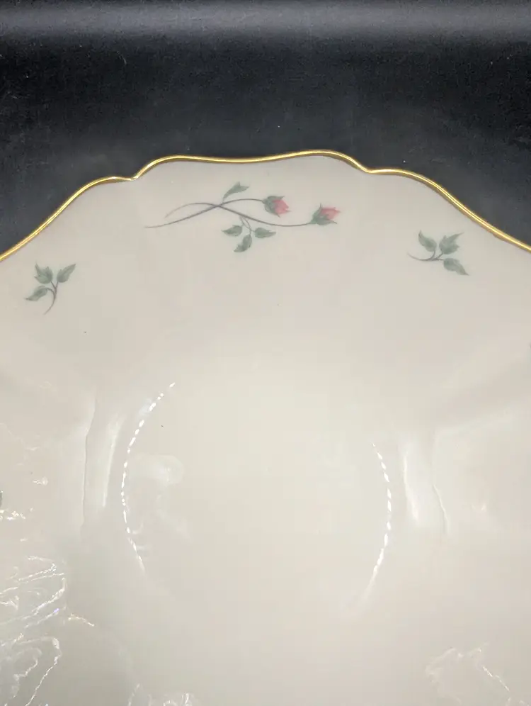 This is a lovely Vtg Lenox "Rose Manor" Bowl, Featuring Delicate Pink Rosebuds and a 24K Gold . Does not look like it has ever been used. No chips or cracks. Please see all pictures for condition and measurements.