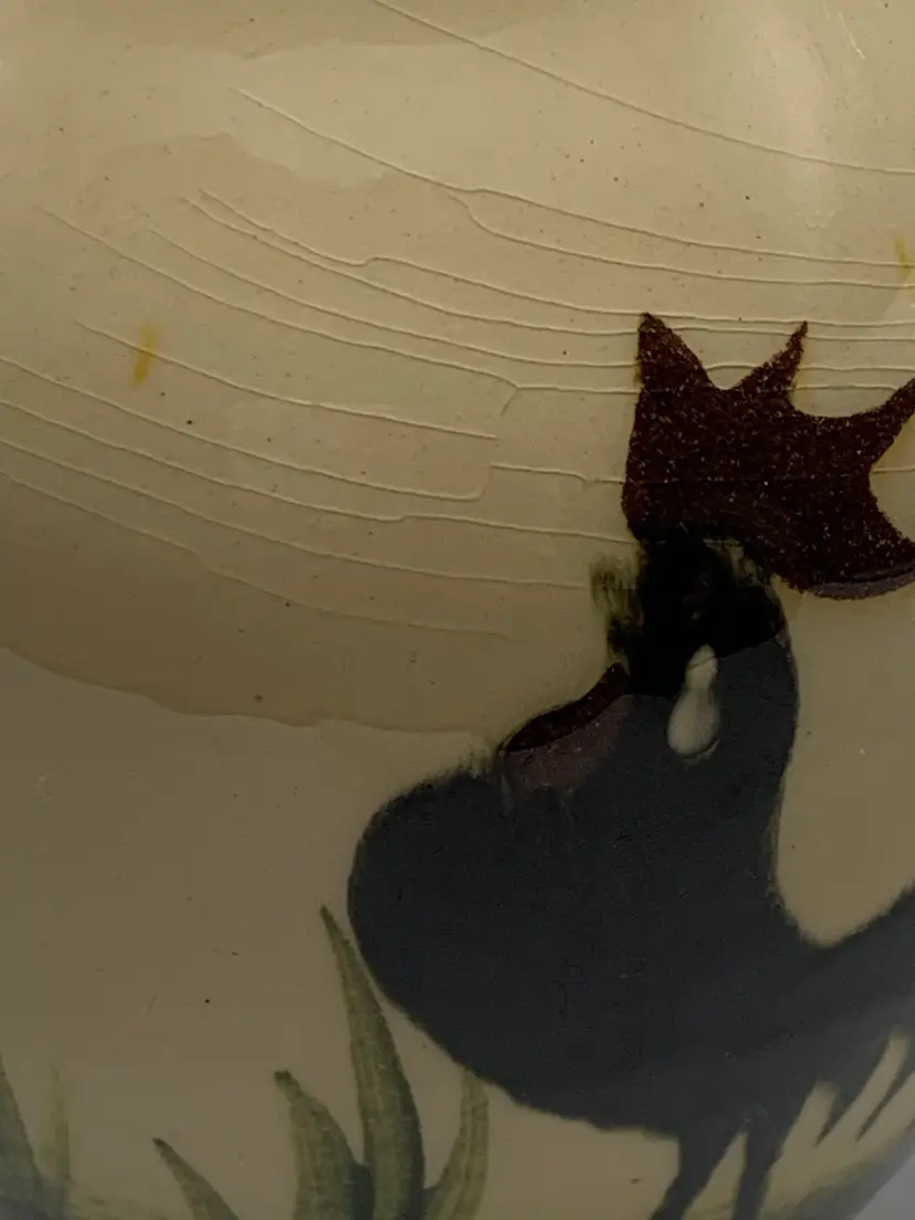 This pitcher does have some crazing due to age. There are no chips or repairs. There is a small crack on the lip.(see photos) I could be wrong, but it looks like the crack may have happened when the clay was drying, it may have always been there. There is a marking on the bottom. I believe it is dated 1943. Longpark Pottery started in the 1880s and closed in 1957. Please see all photos for condition details and measurements. Thanks for checking out my listings.
