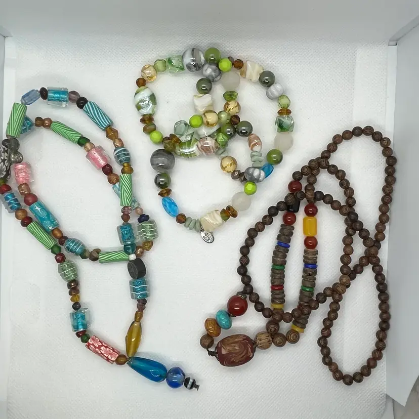 VTG Lot Boho Ethnic Wood Glass Beads Necklaces