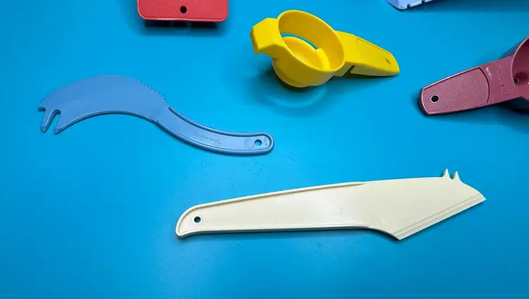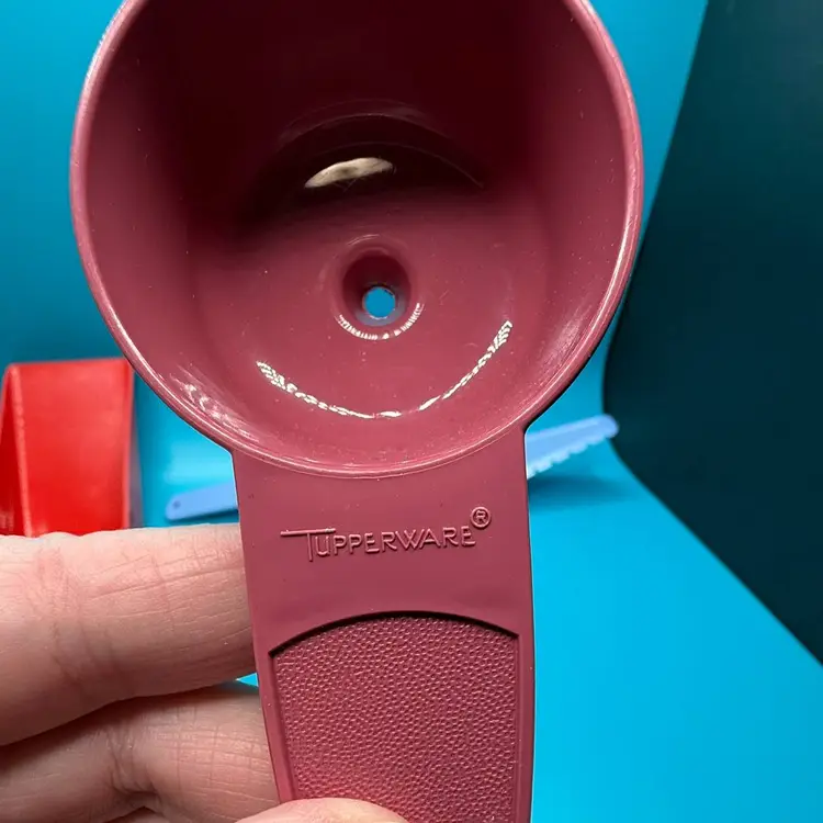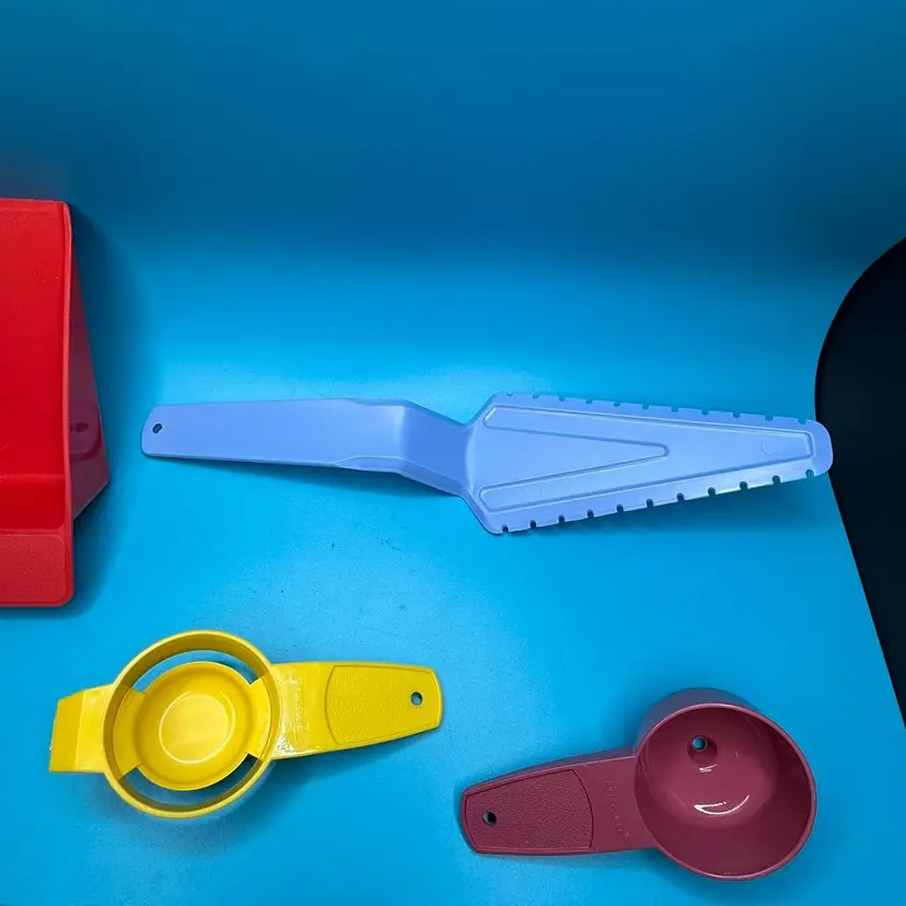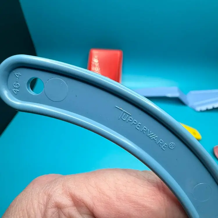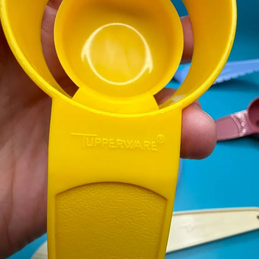 VTG Lot of 6 Tupperware Kitchen Gadgets Scoop, Cheese Slicer, Pastry Server, Egg Separator, Mini Funnel & Sli-Saw-All (For slicing soft veggies and cheese). No broken or missing pieces. Some wear from use. Comes from a smoke free home. If you have any questions, please let me know.