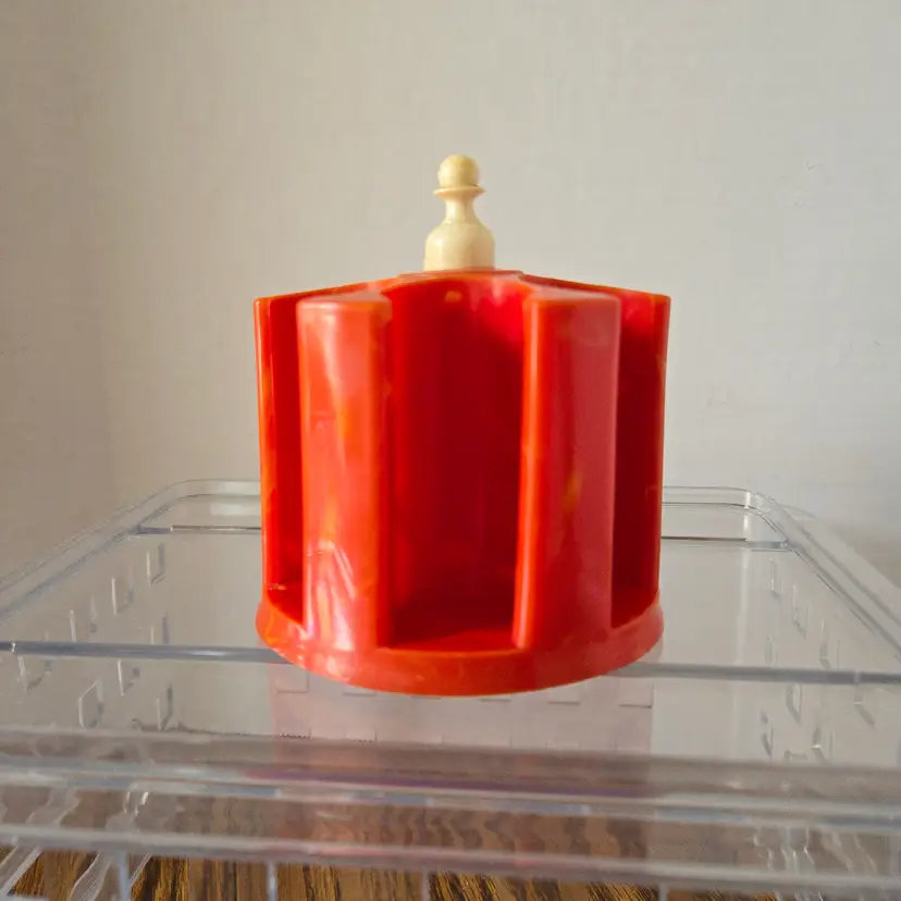 Vtg Marbled Red - Thread Caddy w/ 12 Wooden Spools - bakelite? Please read!