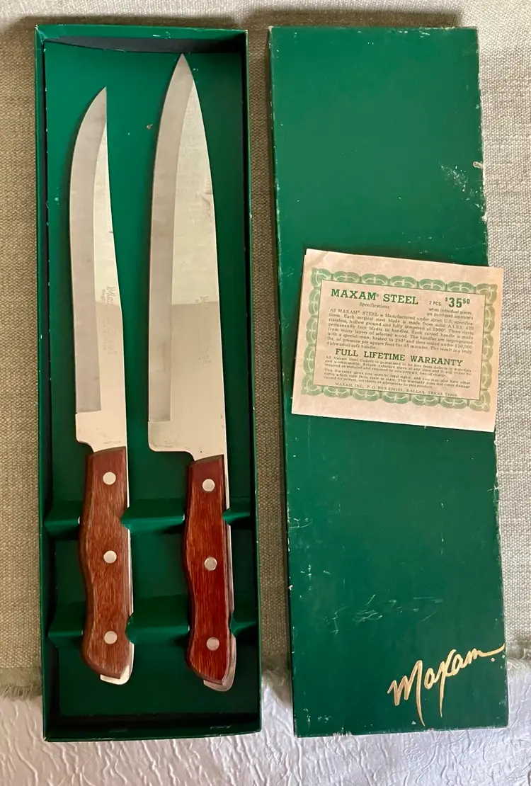 Vtg Maxam Surgical Steel Precision French Carving Chef Knives 8” 9” Original Box