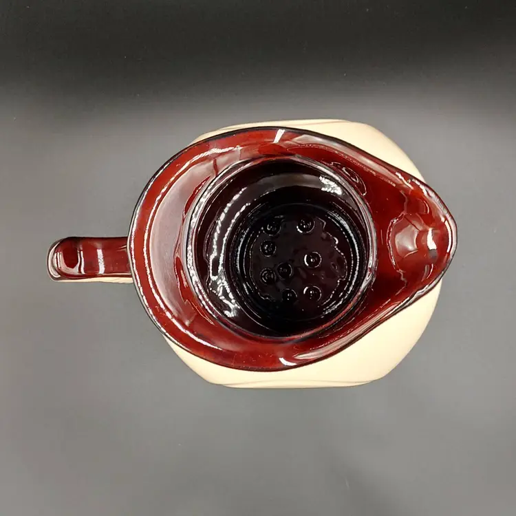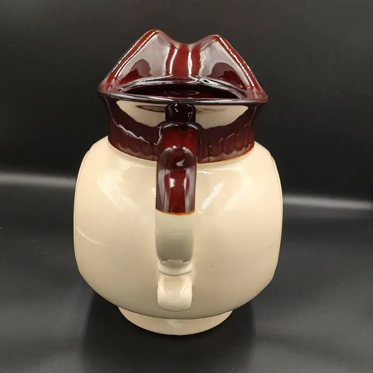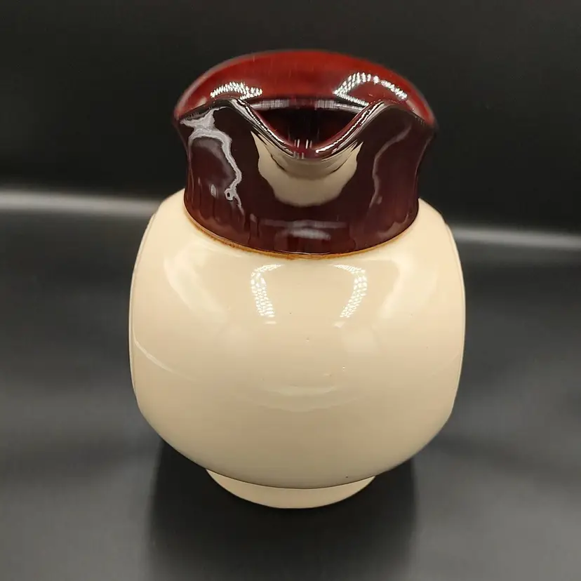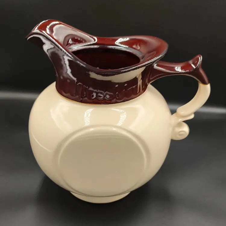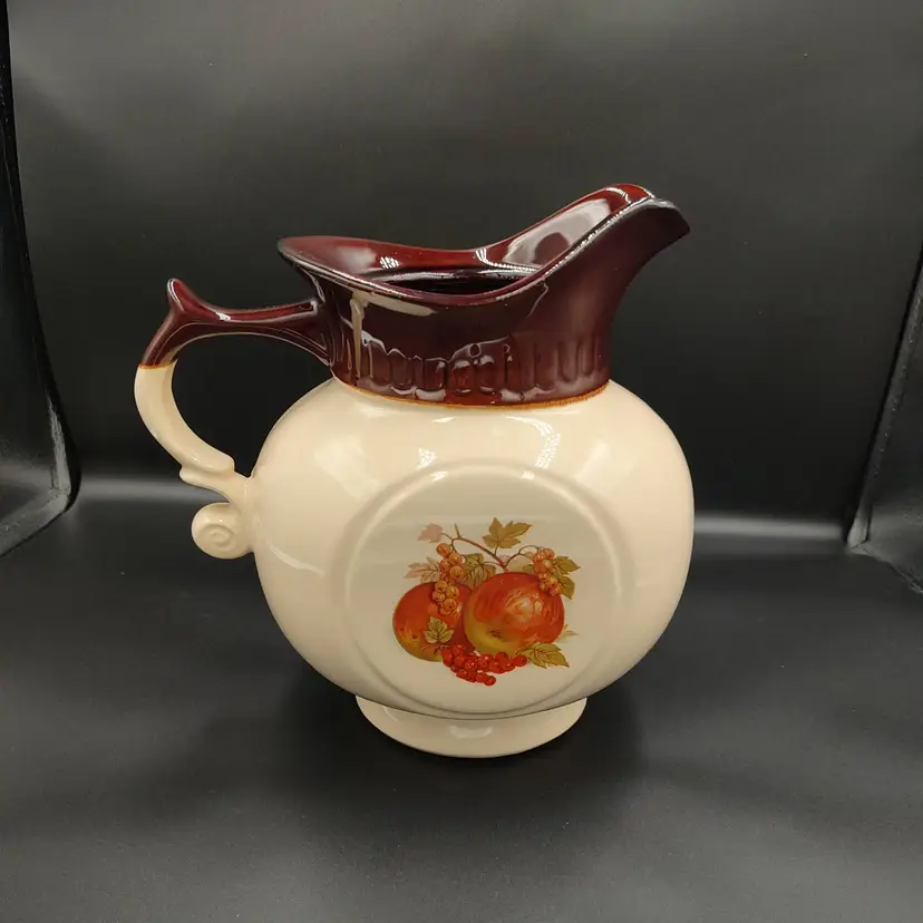 Vintage McCoy Pottery Pitcher With Apples Motif. Height 9" x width 6" x length 8.5". Holds 48 oz. Made in the USA