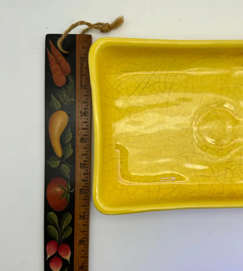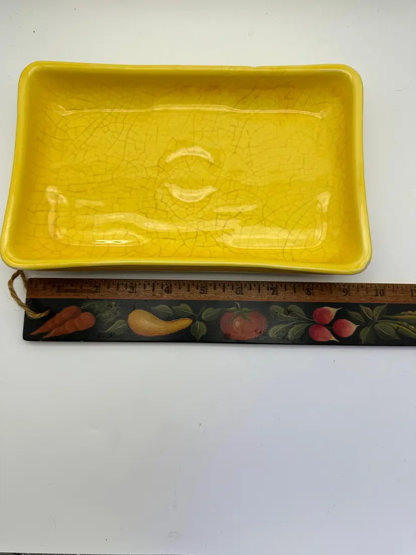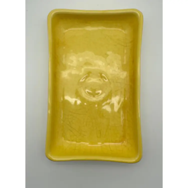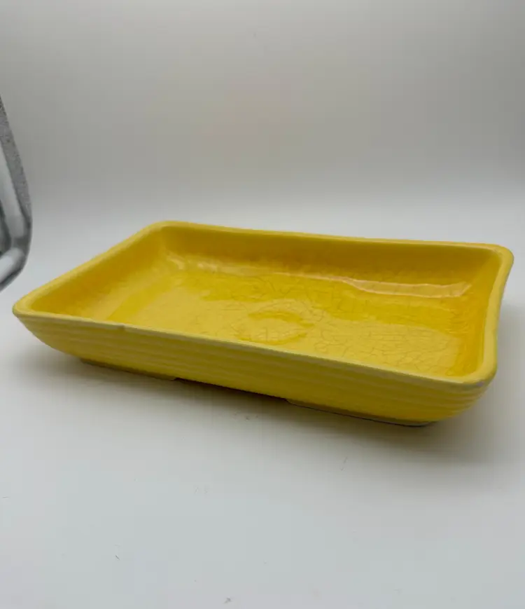 This is a really cool piece that would look great with creeping sedum and maybe a nice hen or mini-cactus in the middle! There is a good bit of crazing but no cracks or chips. I have also used this *under pots as well. You gotta love the bright springy yellow!