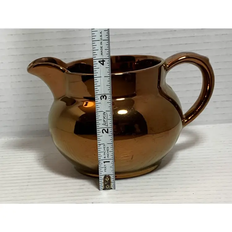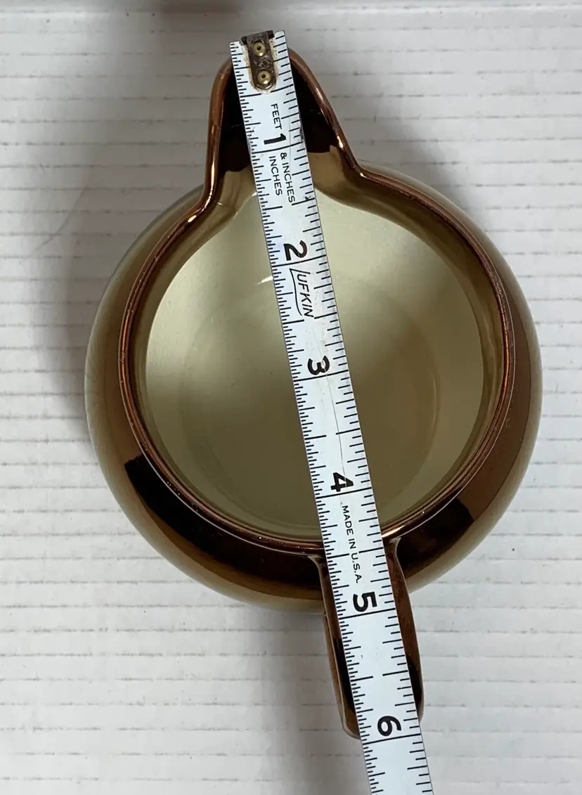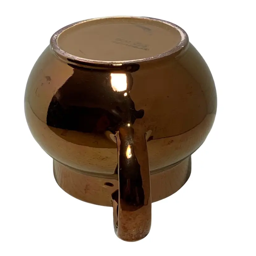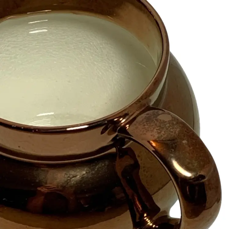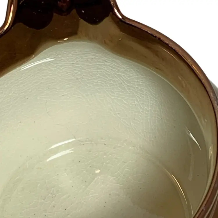 No chips, cracks or repairs. The glaze does have crazing due to age and discoloration on the top of the copper finish handle from being used. Please see all photos for condition details and measurements. Thank you for checking out my listings.