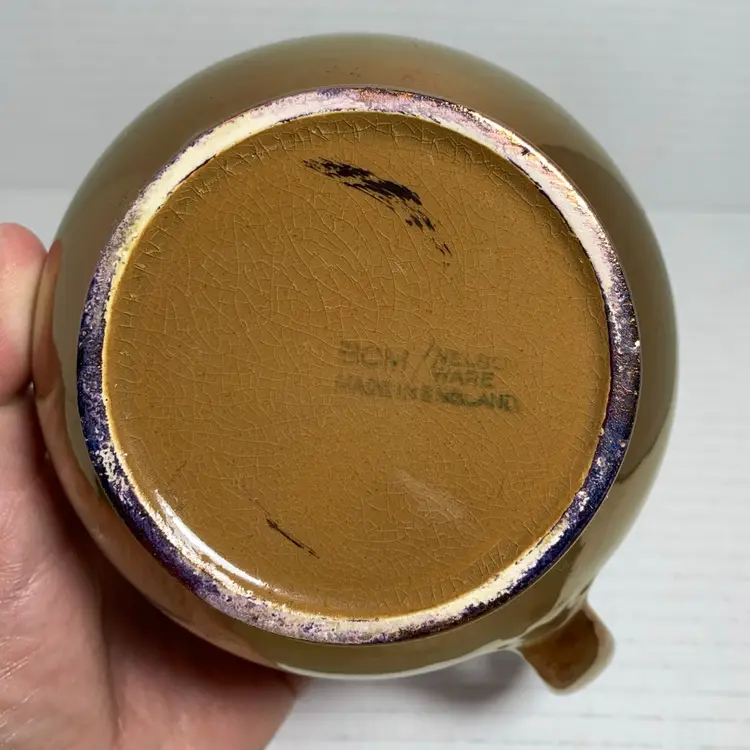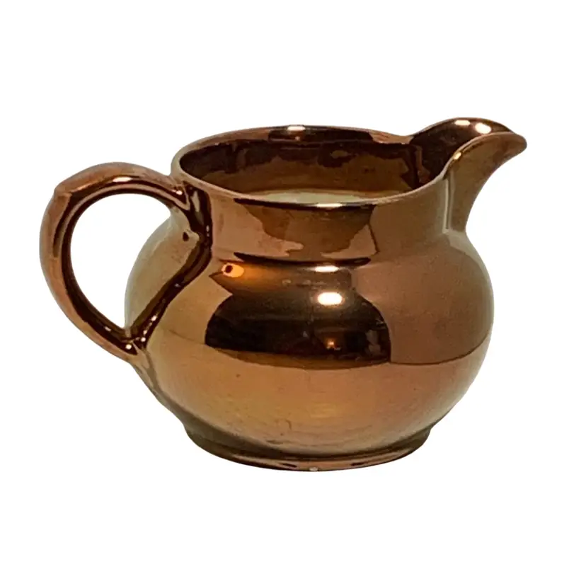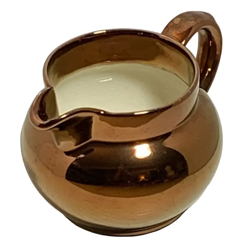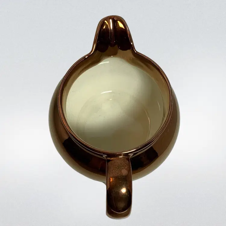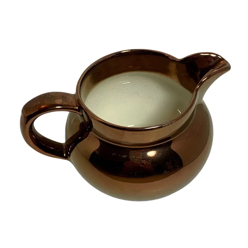 No chips, cracks or repairs. The glaze does have crazing due to age and discoloration on the top of the copper finish handle from being used. Please see all photos for condition details and measurements. Thank you for checking out my listings.