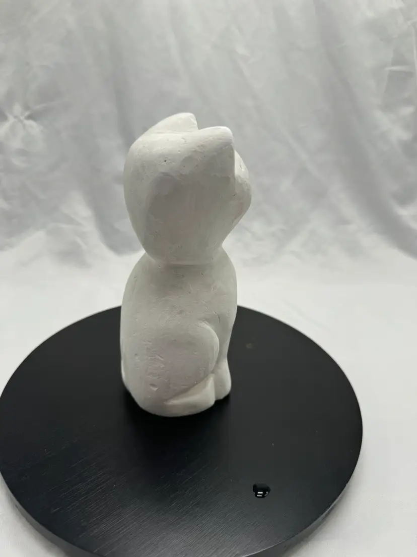 Vintage chalk carved cubist style cat sculpture. This is a super cute cat. He was carved very well. He is in good condition. No chips, no cracks, but there are some surface scratches, which is common with chalk sculptures. See pictures for measurements.