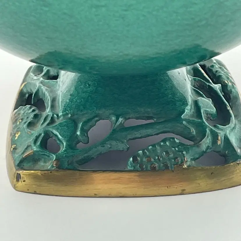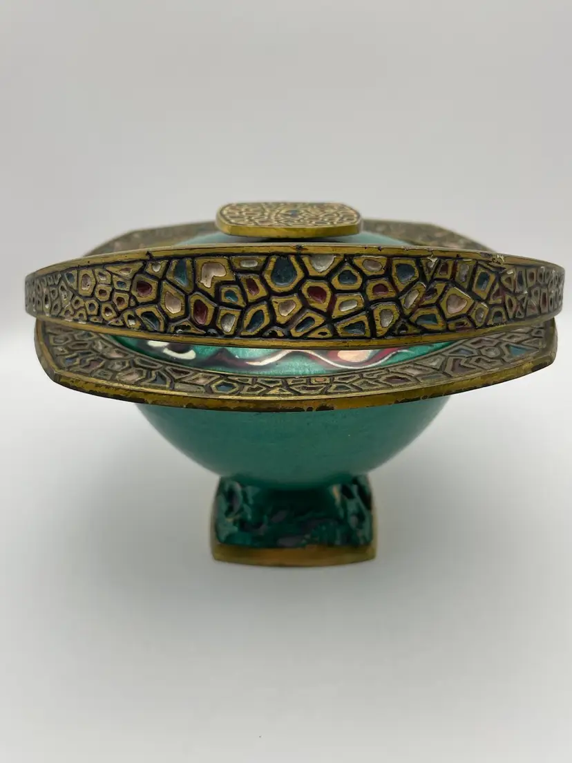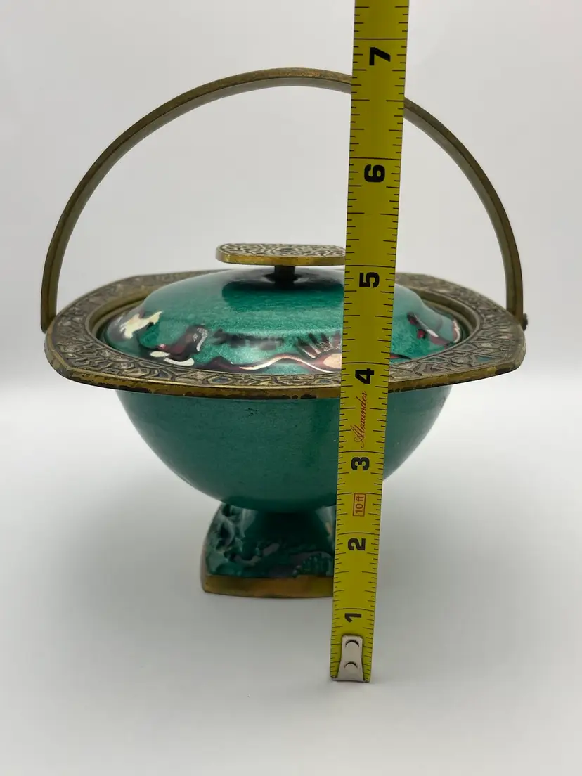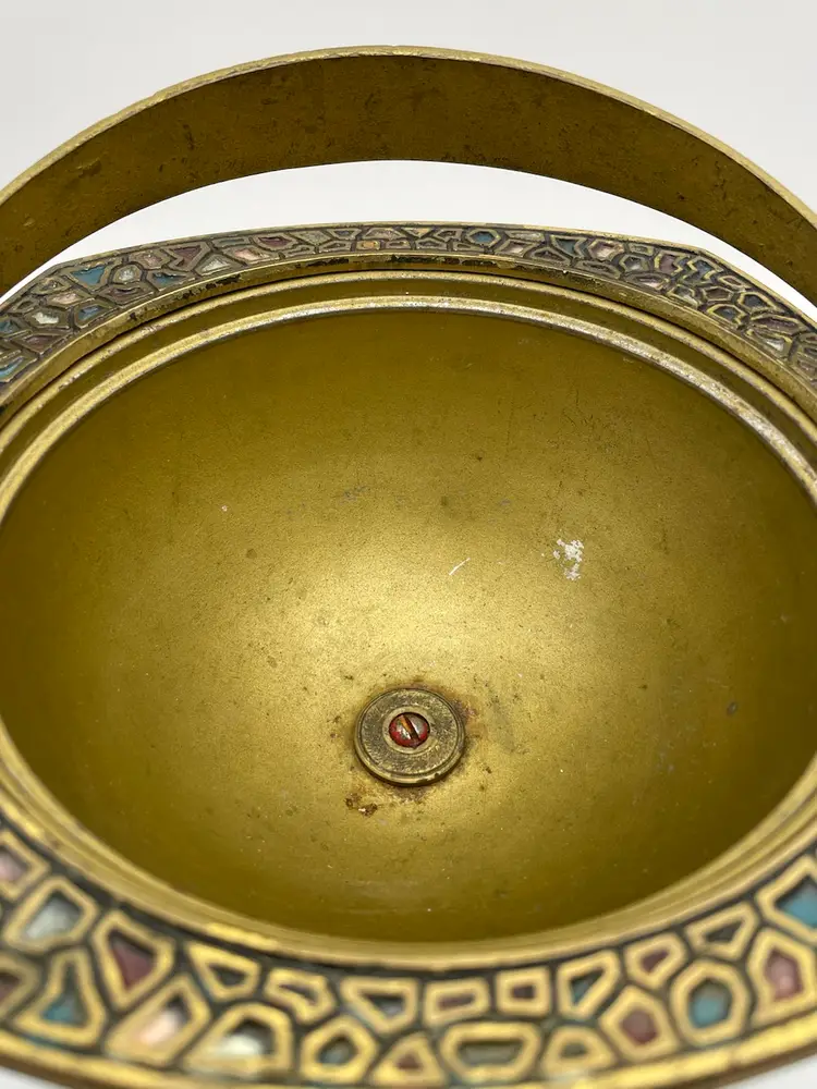 Vtg MCM Judaica Enamel Painted Brass Candy Dish Bowl W/ Lid & Handle Israel (Some scratching, due to age. Shown in last picture)