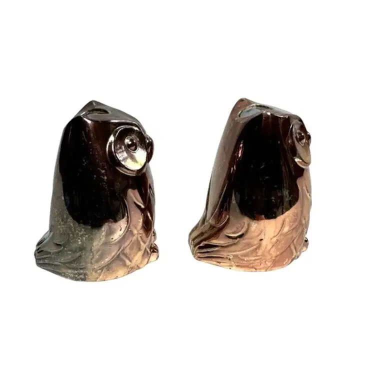 Features: • MCM / OWLS / VTG / SALT AND PEPPER SHAKERS / COPPER LUSTER FINISH • JAPAN