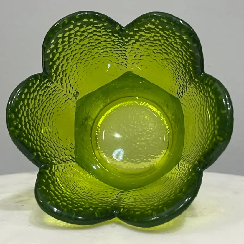 Good preowned condition with no chips or cracks. Some bubbles within the glass from production as shown. Measures approximately 3.25” tall and 4” in diameter. Message me with any questions.