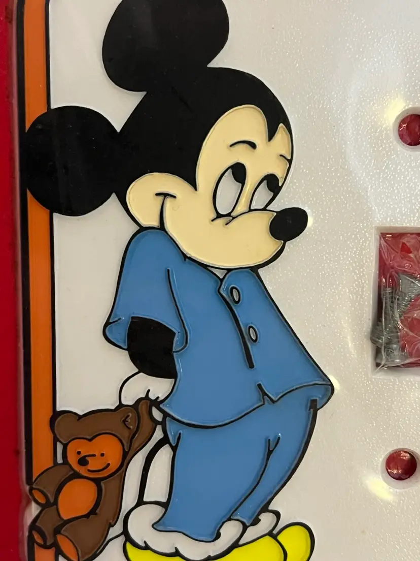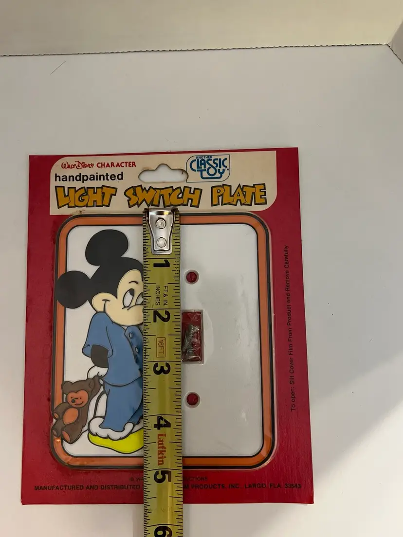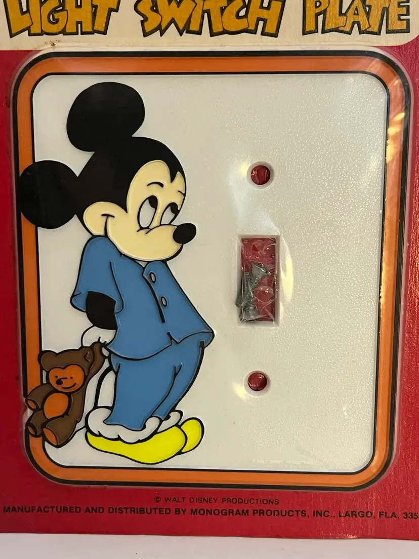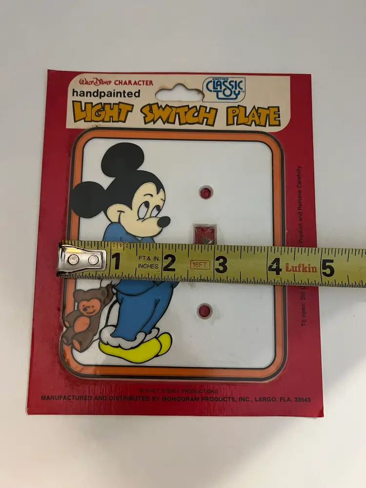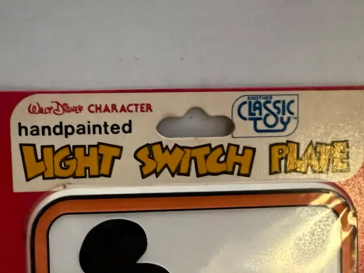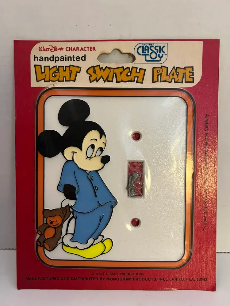 Add some Disney magic to your home with this vintage hand-painted light switch plate cover featuring the lovable character, Mickey Mouse. The plate design is a toggle switch with a joystick-style switch style that fits a one-gang screw mounting style. The multicolor plate is made of plastic and suits any room in your home, especially the bathroom, bedroom, or kid's room.