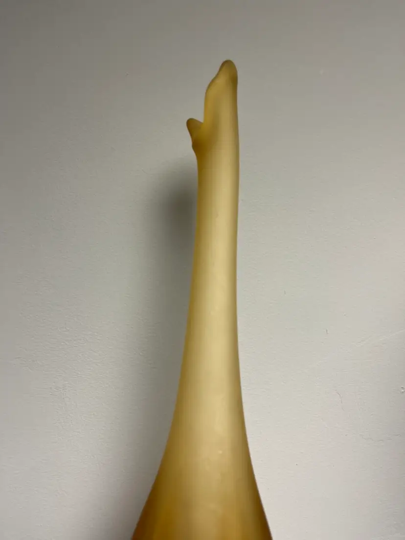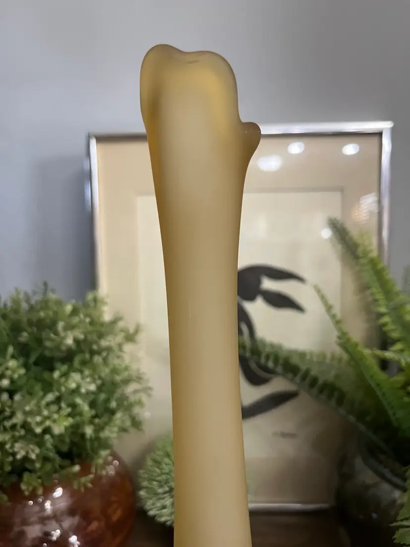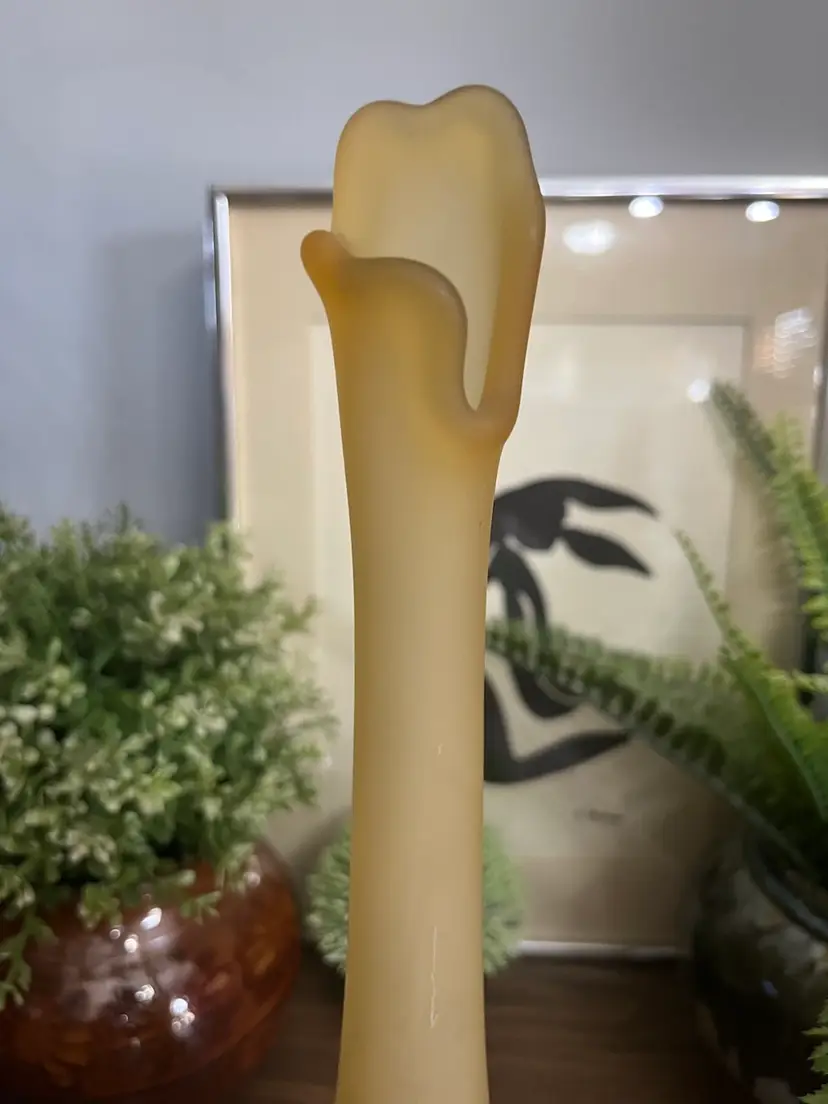 No chips or cracks. There are many little scratches and areas of wear to the satin finish as shown within the photos. Some white residue on the bottom. Original sticker is still on the bottom as well. Please closely review all photos to ensure you’re fine with the condition prior to purchasing. Measures about 15.75” tall. Message me with any questions.