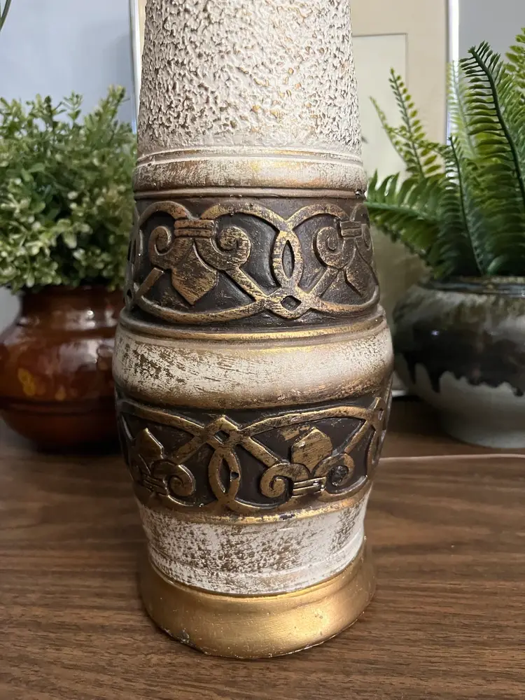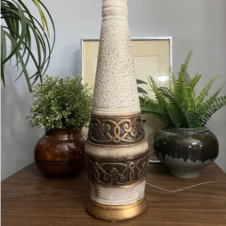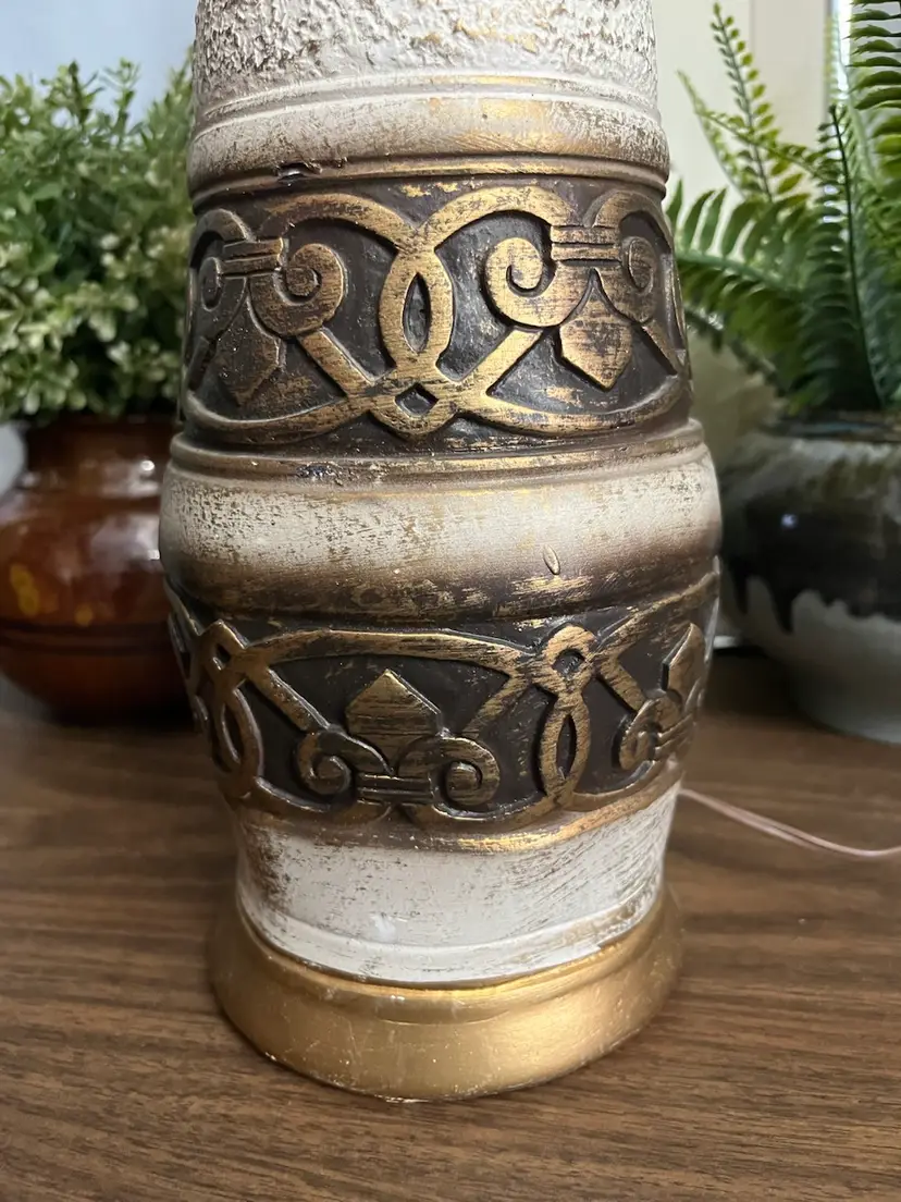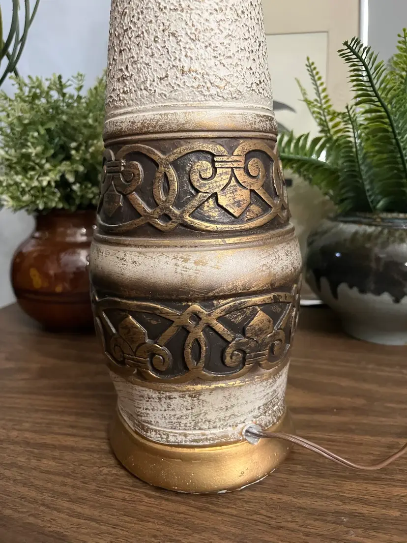 Good preowned working condition. Some light wear across the lamp as shown including some very small minor chips. Please closely review photos for details. Measures approximately 27.5” tall including the harp. Message me with any questions.