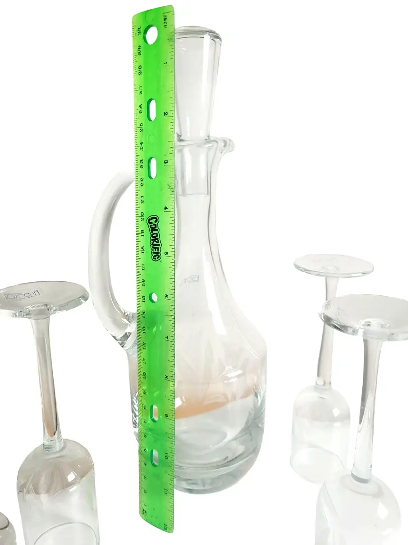 No chips or cracks. Decanter height: 11.5 inches. Glass diameter: 1.5 inches.
