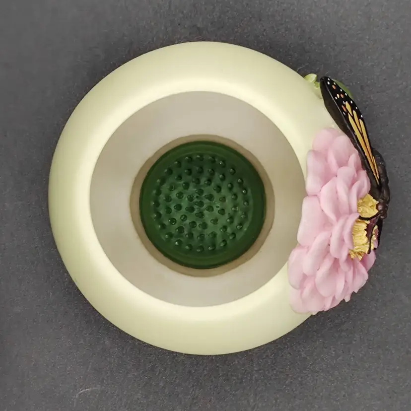 Vintage 1190 Ceramic Monarch Butterfly With Zinna Flower Frog Planter Hand Painted height 3" x diameter 4". Made in China