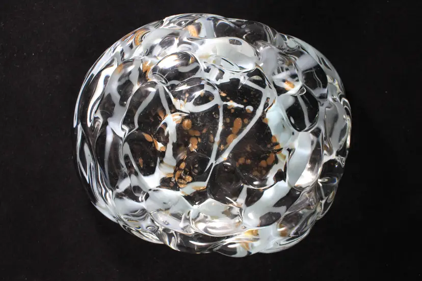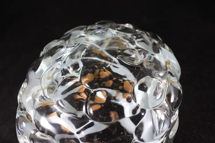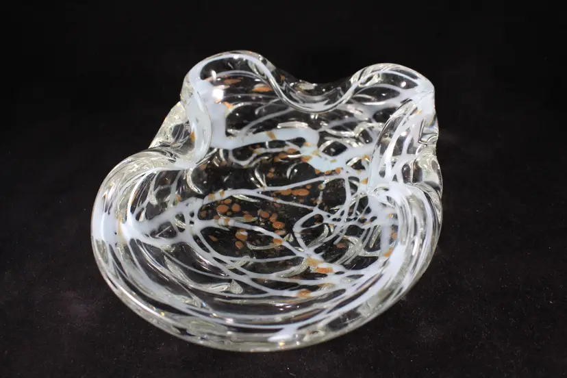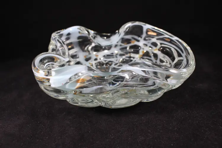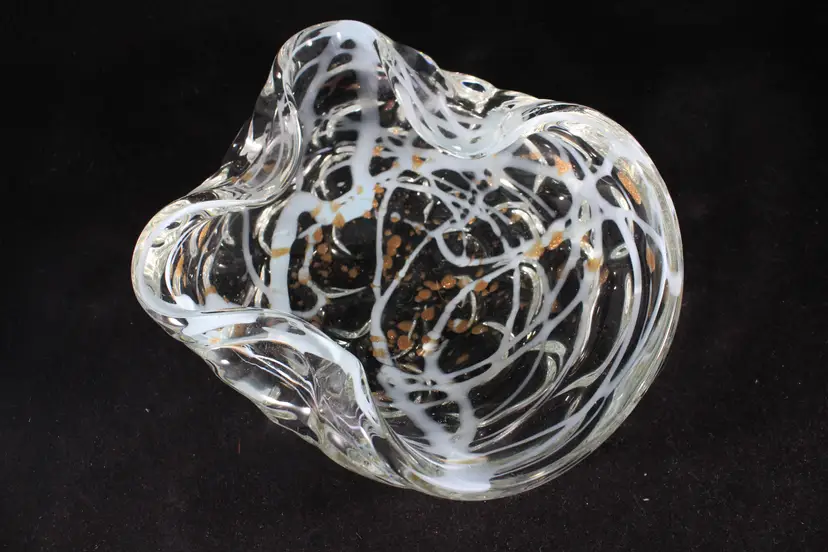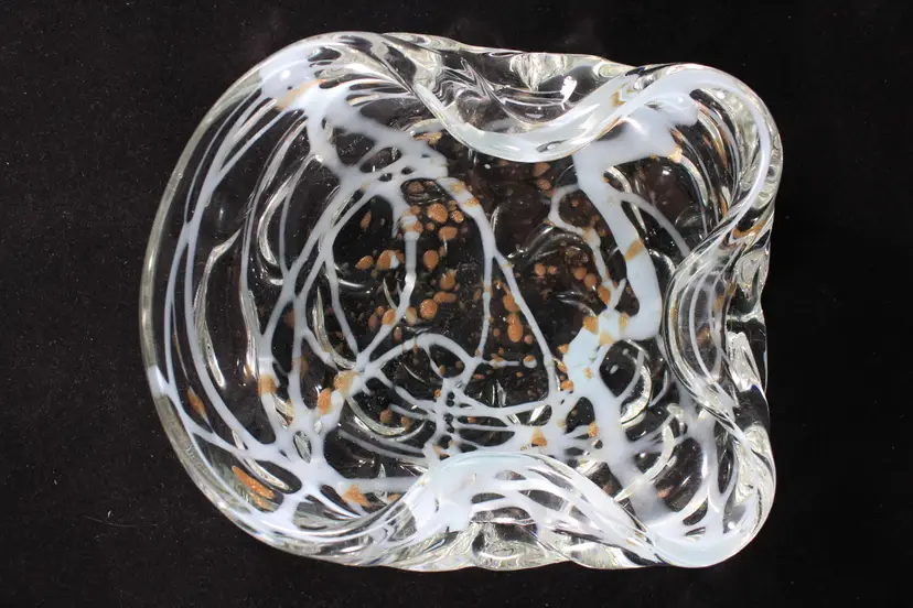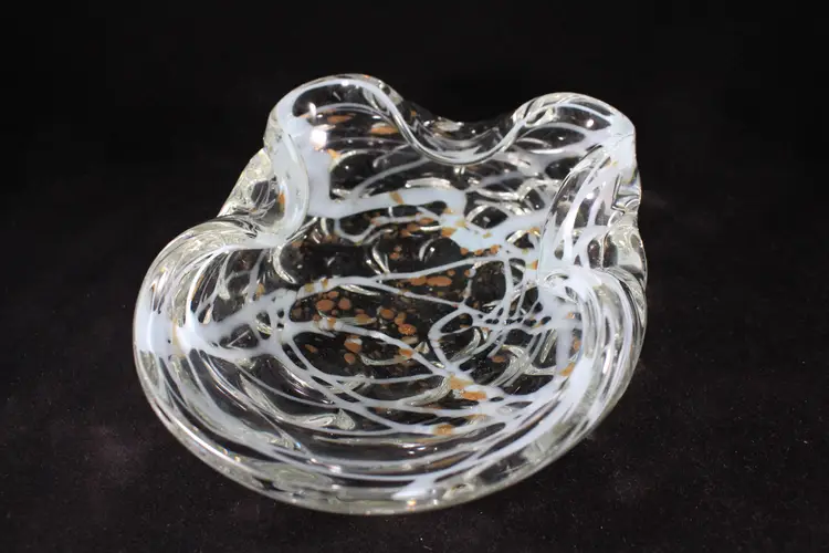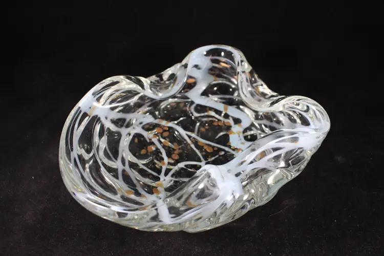 Vtg Murano Art Glass MCM Dish Bowl Gold Aventurine w/Aqua Blue Swirl