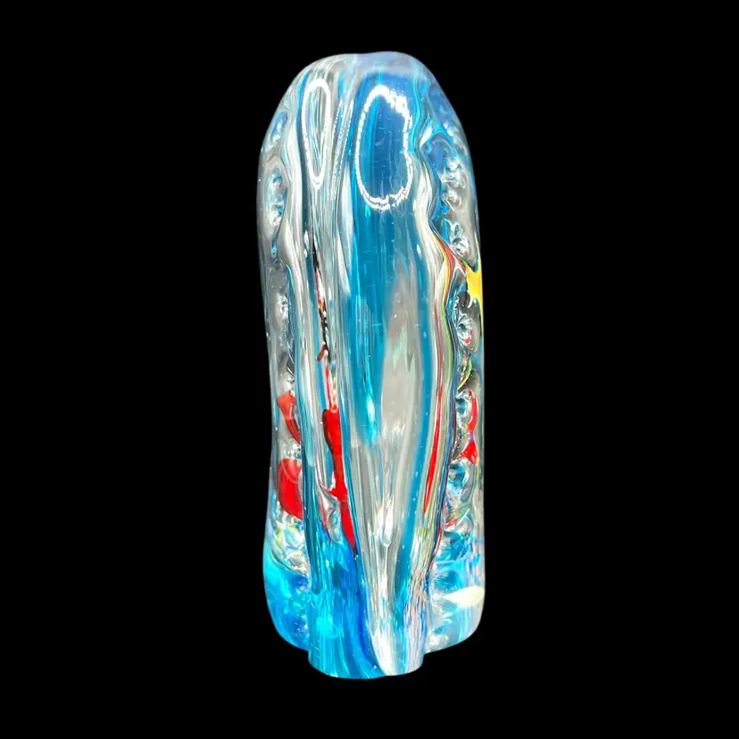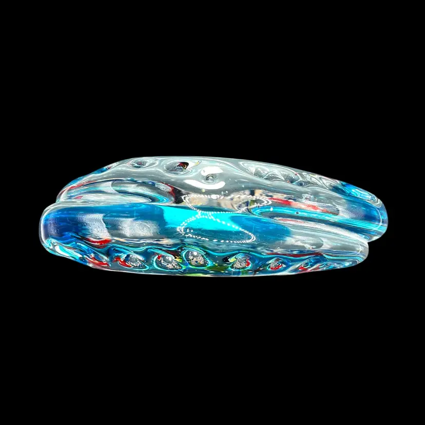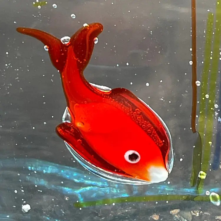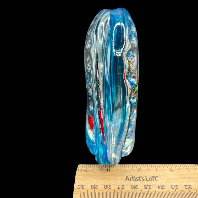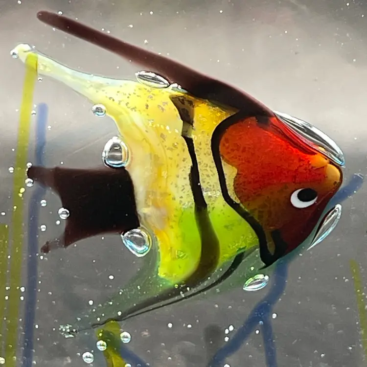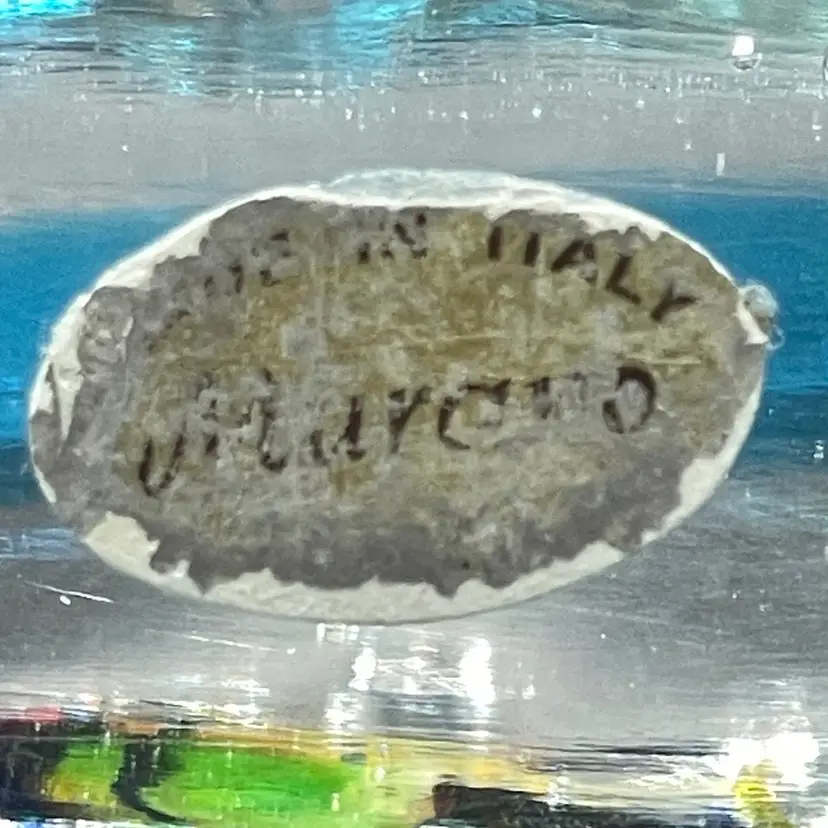 This vintage Murano glass clamshell aquarium features three fish in a multicolor design with aventurine, made by hand in Italy. With its original sticker intact, this unique paperweight adds a touch of elegance and craftsmanship to any collection. The medium size and intricate details make it a standout piece for collectors of decorative glass art.