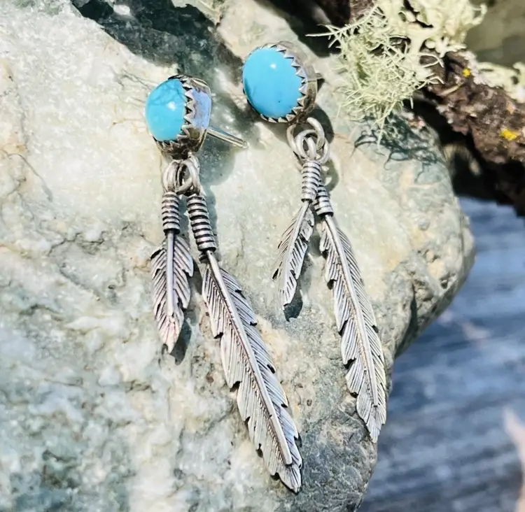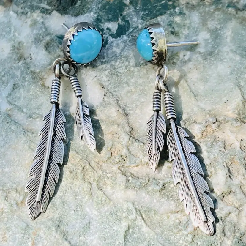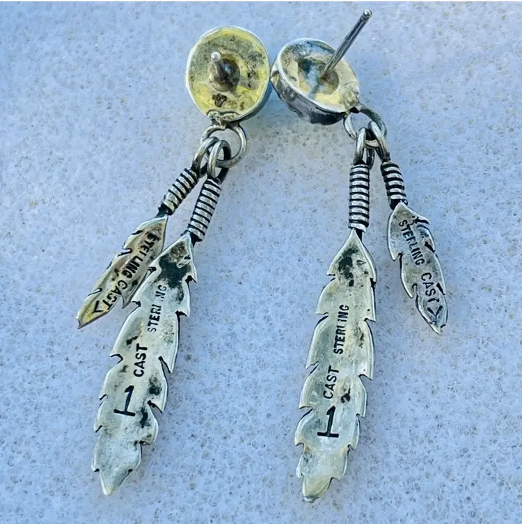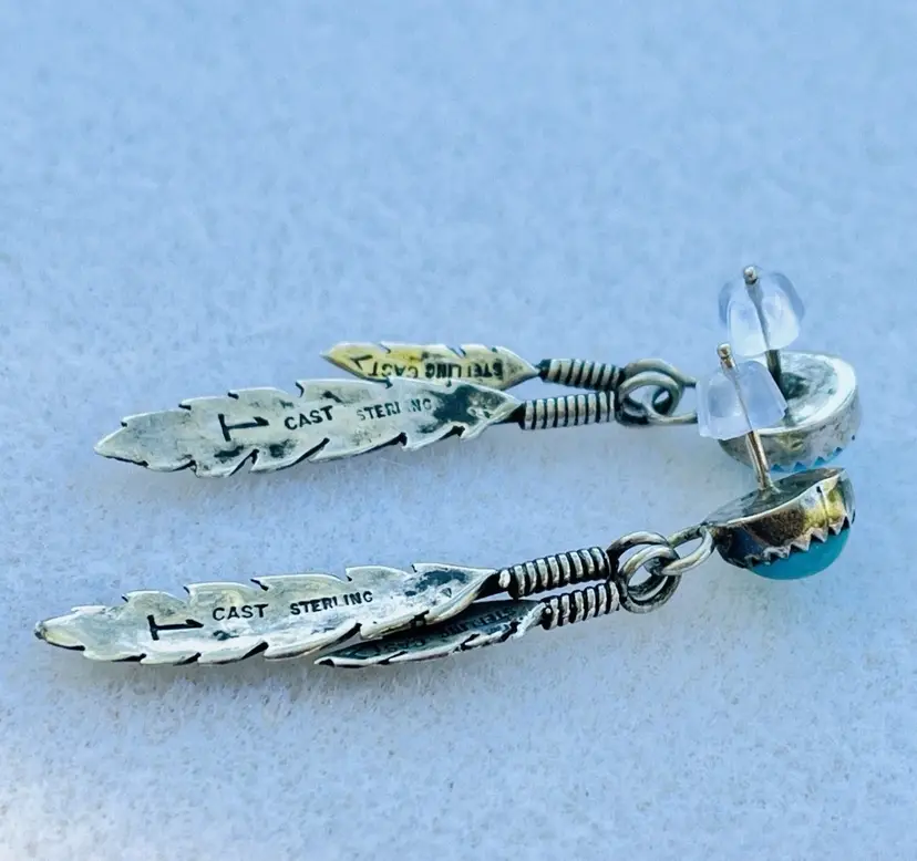 Very good clean condition with new rubber backings. I ship within 24 hours of purchase. Genuine turquoise and sterling Navajo signed earrings.
