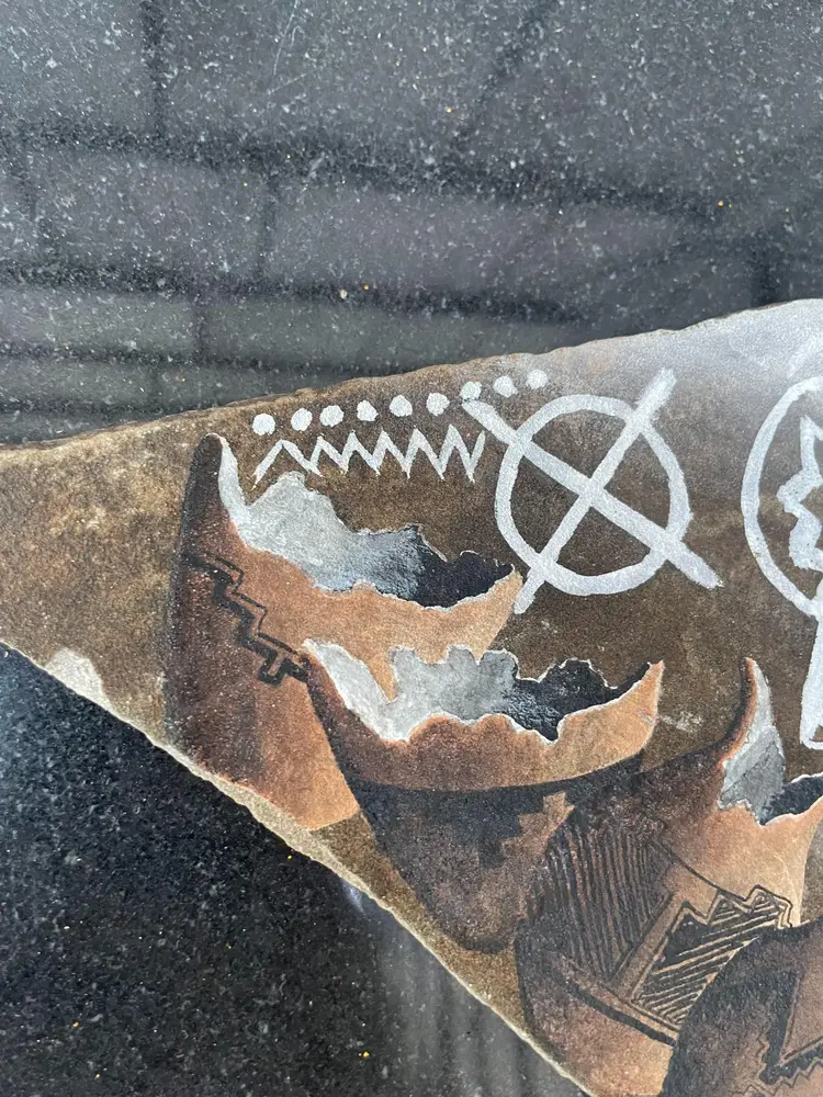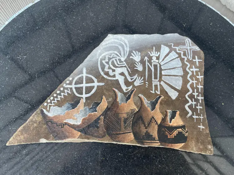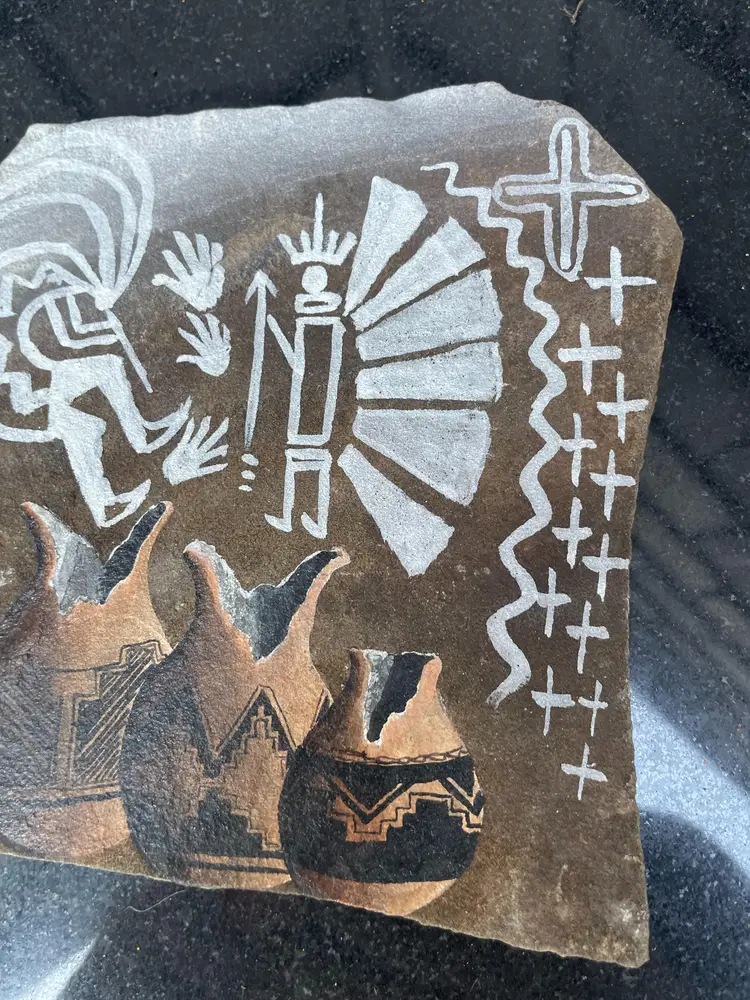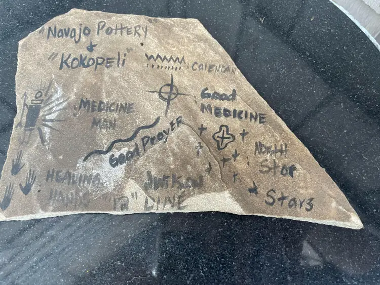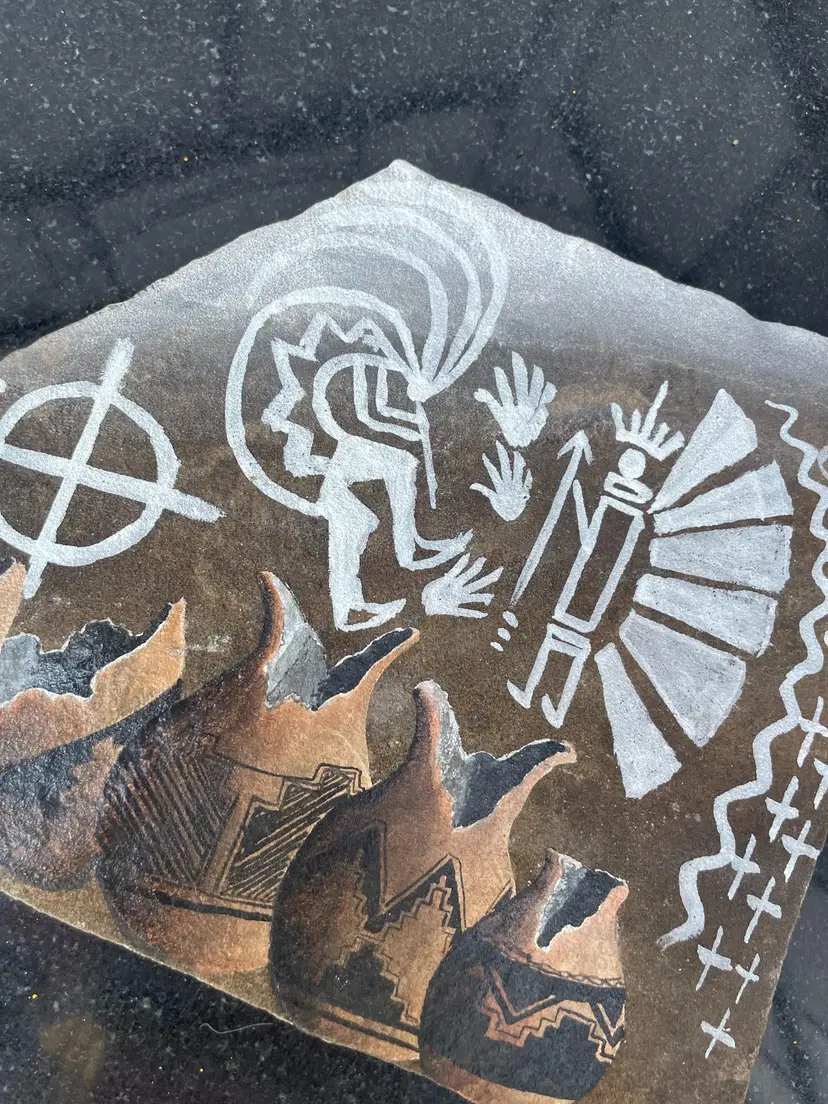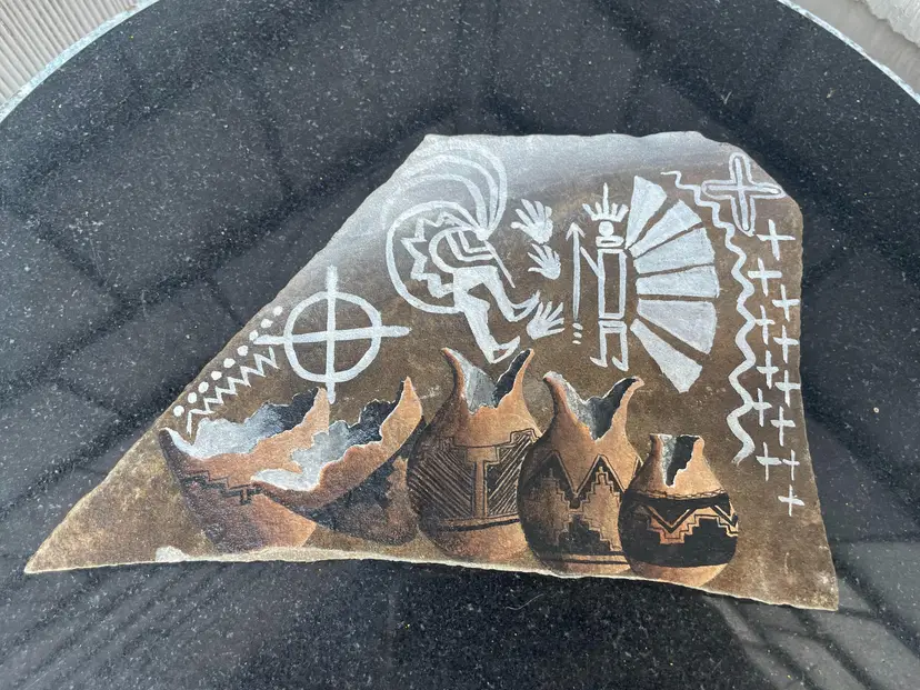 Vintage Navajo Slate Signed Kokopelli Pottery Hand Painted With Legend 9" x 5.5". Seems to be in great condition, see pics. I've no idea of the value, feel free to make an offer.