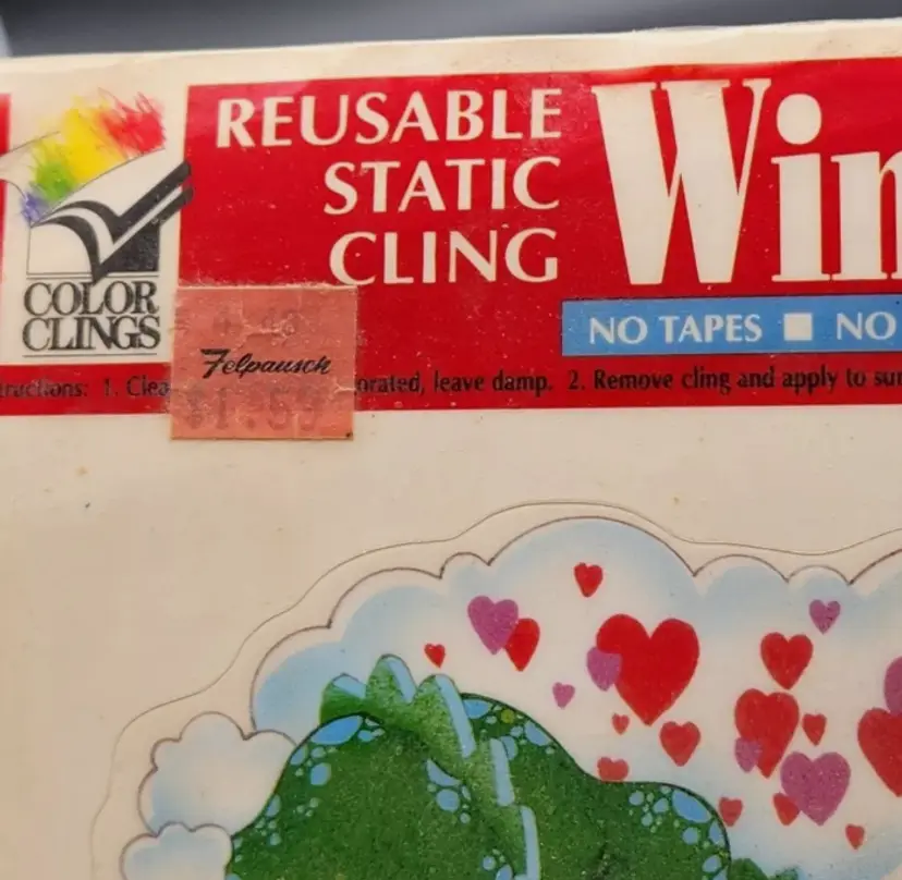 Visible on both sides has never been taken off the cardboard backing. Has corner damage seen in photos. Color Clings with green and blue dinosaurs with multi- colored hearts & lettering. ** **Items are sold AS-IS, it will be stated if there are any damages or flaws in the description or photos. Buying multiples, I combine shipping. Item(s) that is for sale is pictured. Smoke-free seller in a pet friendly home. Any questions please don’t hesitate to ask! My packaging may be recycled packaging.