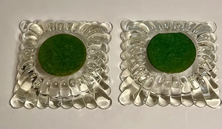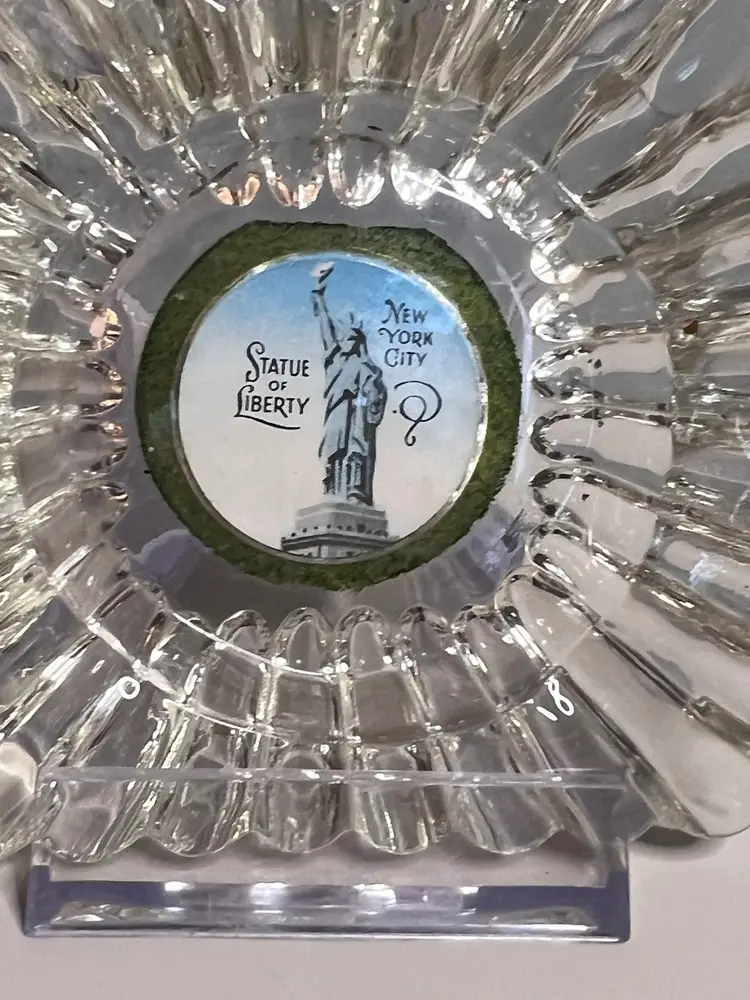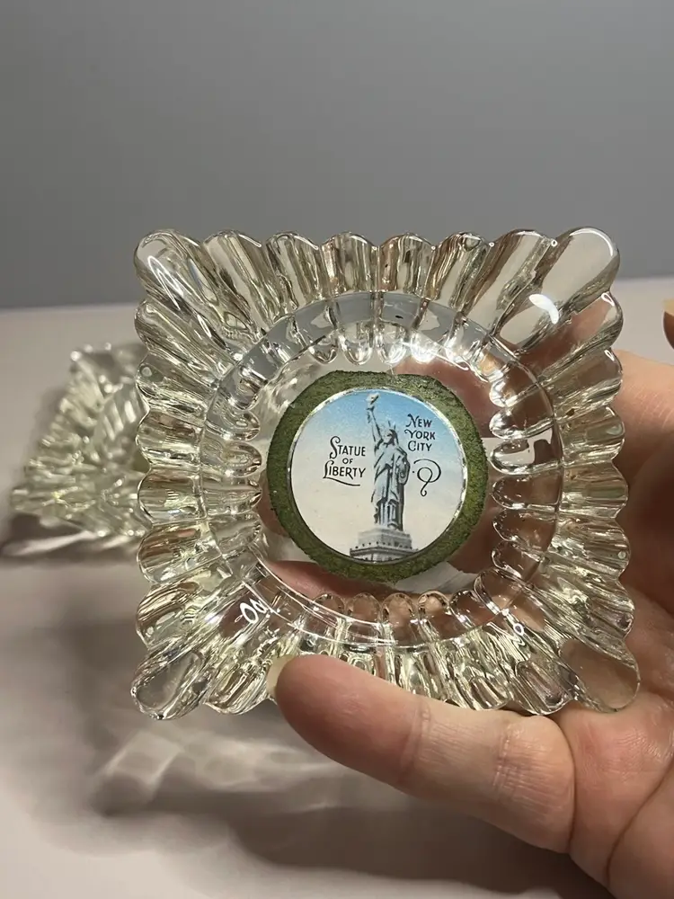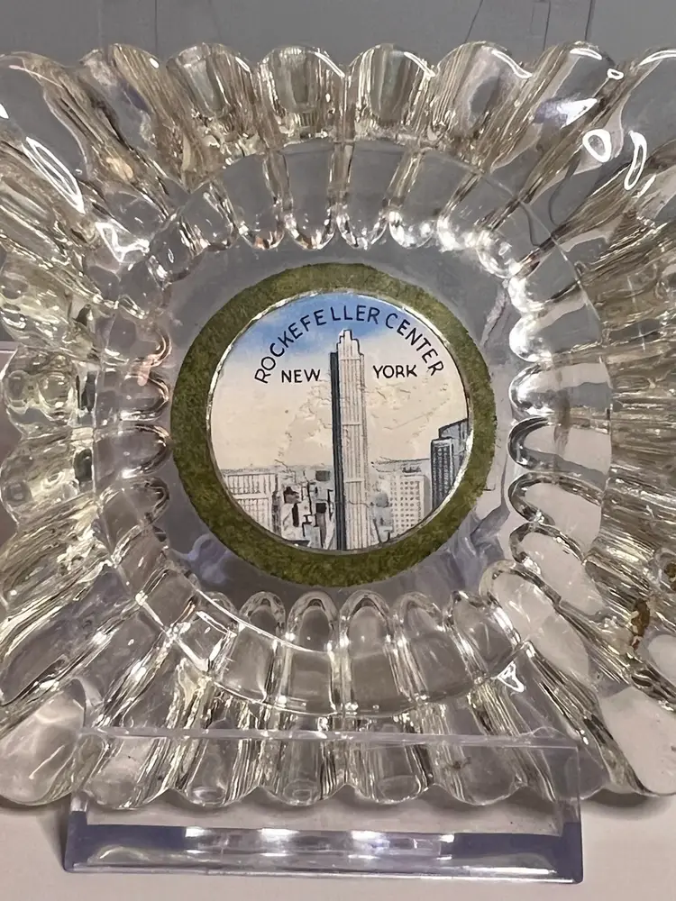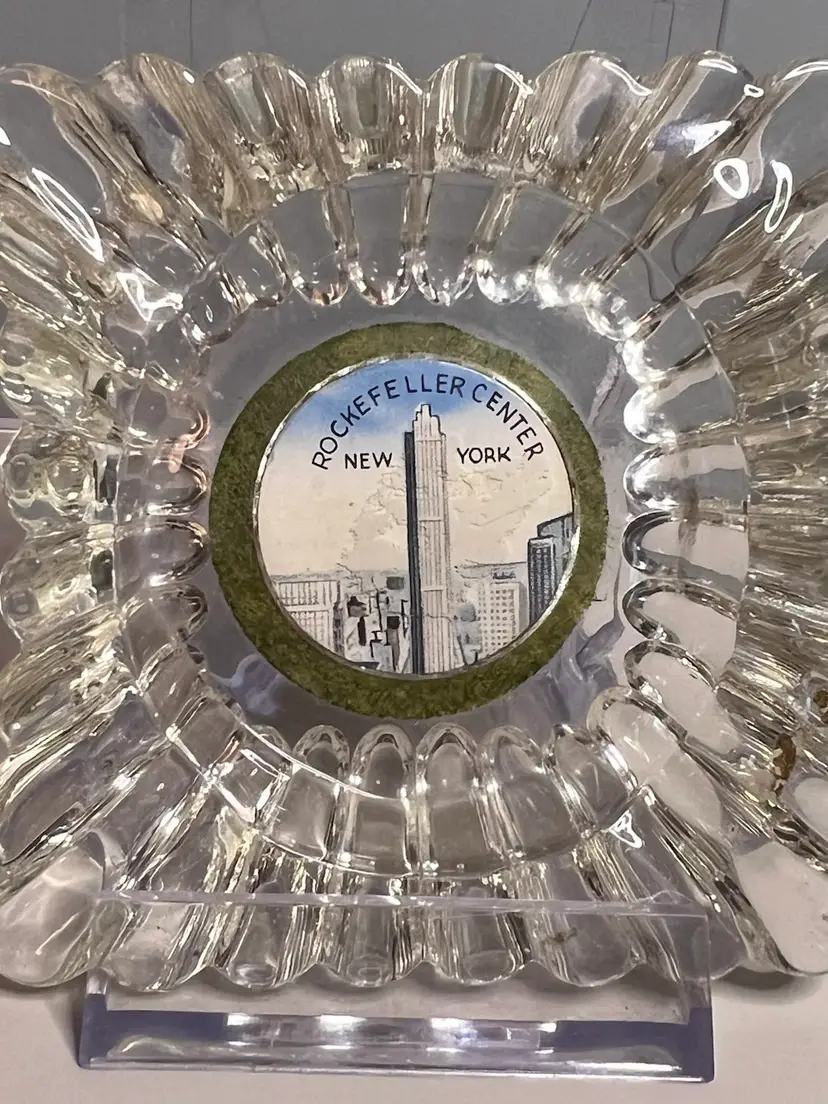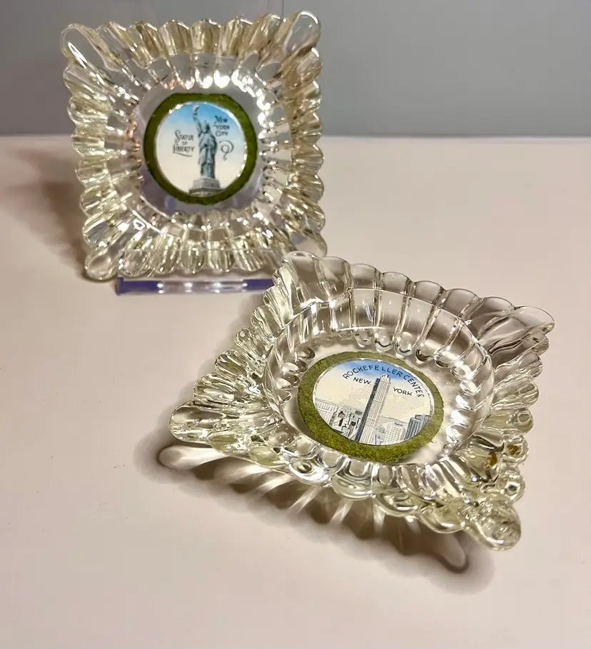 Two vintage souvenir ashtrays from New York City. 3 1/4”. Rockefeller center is a little cloudy. Felt backing. No chips or cracks.