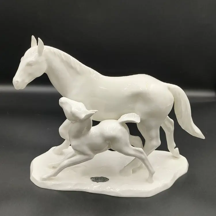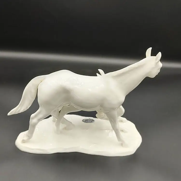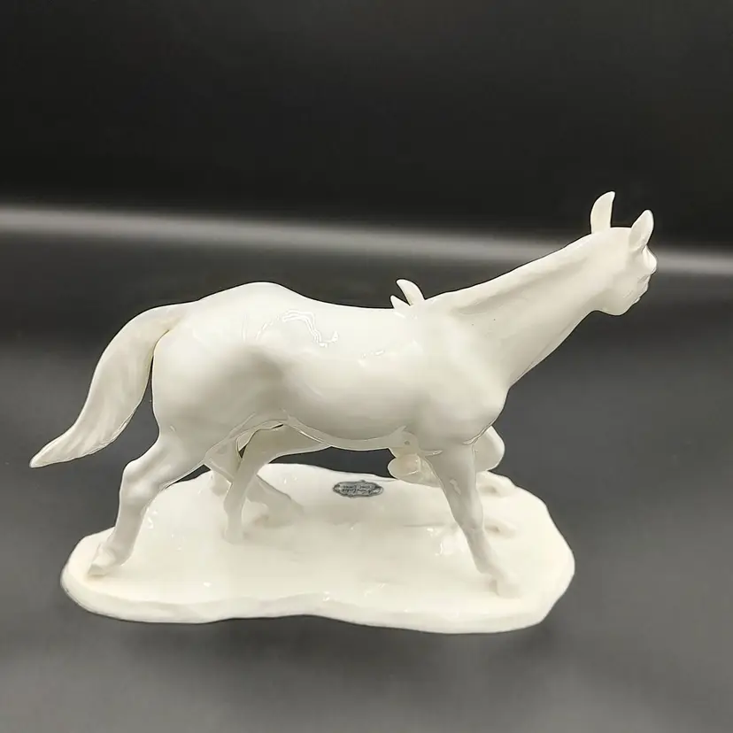 Vintage 1960's Noritake Nippon Toki Bone China White House With Foal Figurine. Height 6.5" x width 3" x length 9". Made in Japan.